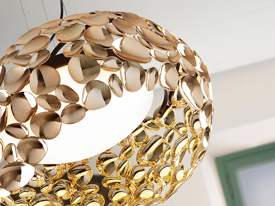 Traga sofisticação e personalidade ao seu espaço com o candeeiro de teto narisa dourado 5l. O acabamento dourado e a estrutura composta por elementos circulares criam um brilho quente e reflexos elegantes que valorizam qualquer sala de jantar ou estar. Suspenso de forma leve, oferece cinco pontos de luz que iluminam com equilíbrio e destacam texturas e cores da decoração. Peça de forte impacto visual que funciona como ponto focal e simultaneamente garante um ambiente acolhedor e contemporâneo. Perfeito para quem procura transformar um espaço com estilo sem perder funcionalidade.