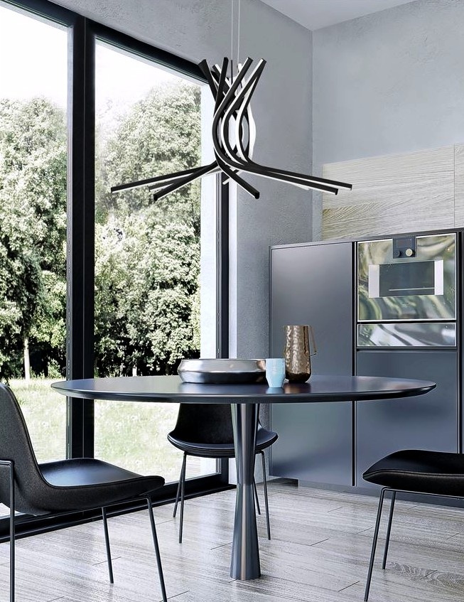 Descrição: Candeeiro com acabamento preto e acrílico.