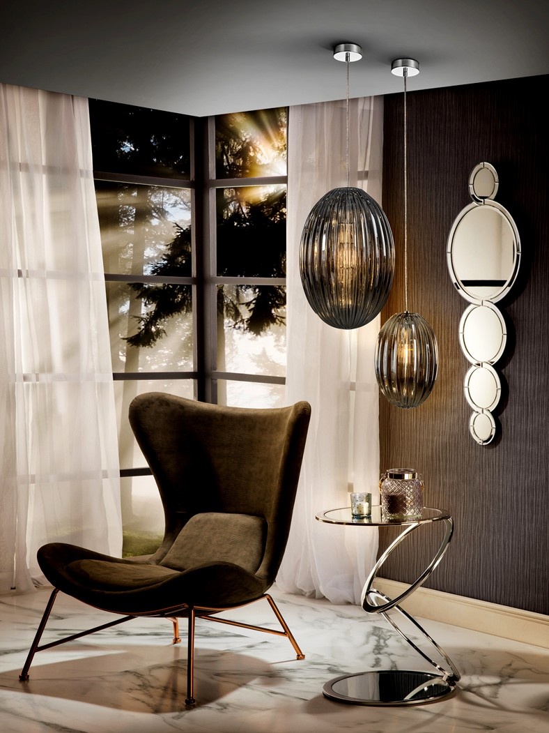 Descrição: Candeeiro fabricado em metal com acabamento cromado.