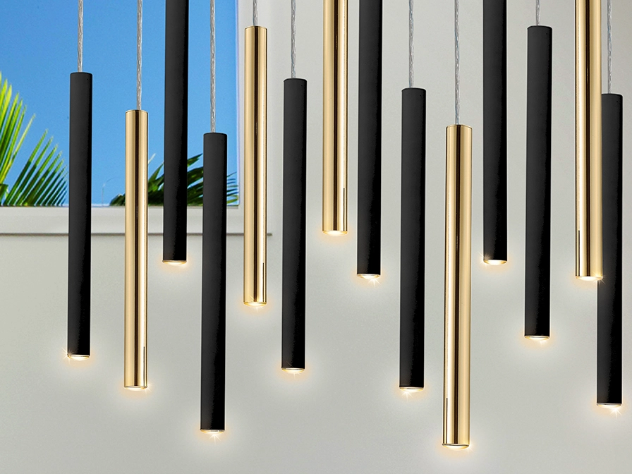 O candeeiro de teto varas 14l g transforma qualquer entrada ou sala com pé direito alto num ambiente sofisticado e acolhedor. Com catorze elementos suspensos de diferentes comprimentos, cria um jogo de luz e sombra que valoriza escadas e áreas centrais da casa. O design contemporâneo e os toques dourados realçam detalhes arquitectónicos enquanto oferecem um ponto focal elegante que capta olhares sem sobrecarregar o espaço. Ideal para quem procura iluminação decorativa que também cumpre uma função prática, distribui a luz de forma harmoniosa e contribui para a sensação de amplitude. A sua presença eleva a estética de salas de jantar, halls e zonas de passagem, oferecendo uma solução multifuncional que combina estilo e funcionalidade. Fácil de integrar em interiores modernos e minimalistas, destaca materiais e cores do seu ambiente natural. Se pretende renovar a imagem da sua casa com um candeeiro escultural, o varas 14l g é uma escolha que alia impacto visual a qualidade de presença, criando ambientes memoráveis desde a primeira impressão.
