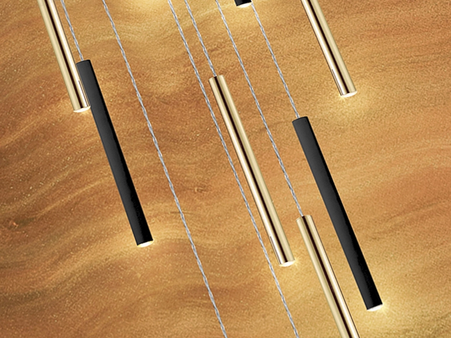 • Design de varas suspensas cria jogo luminoso