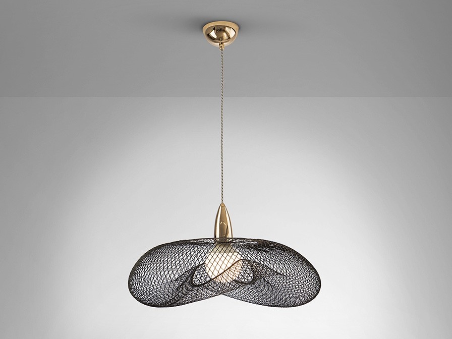dourado e tulipa de malha metálica dourada ou preta.