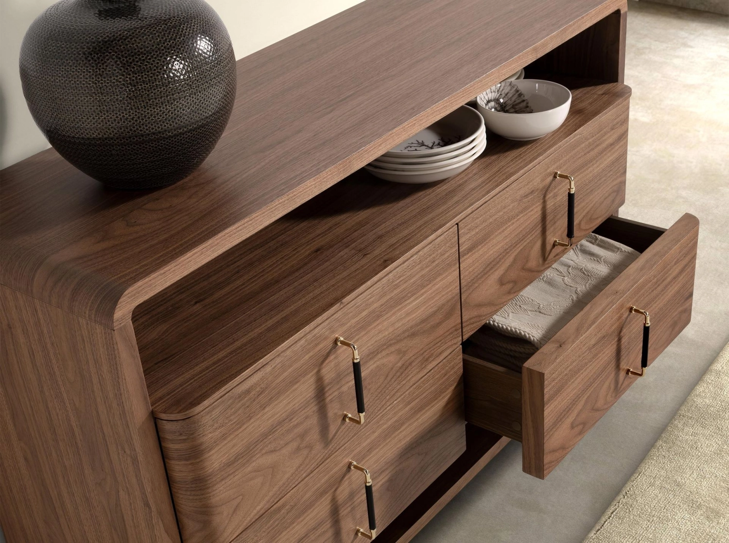 Espaço de arrumação com 4 gavetas com sistema de abertura com puxador de lingueta e fecho soft-closing.