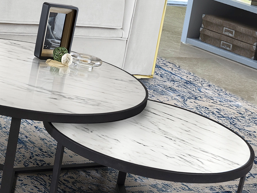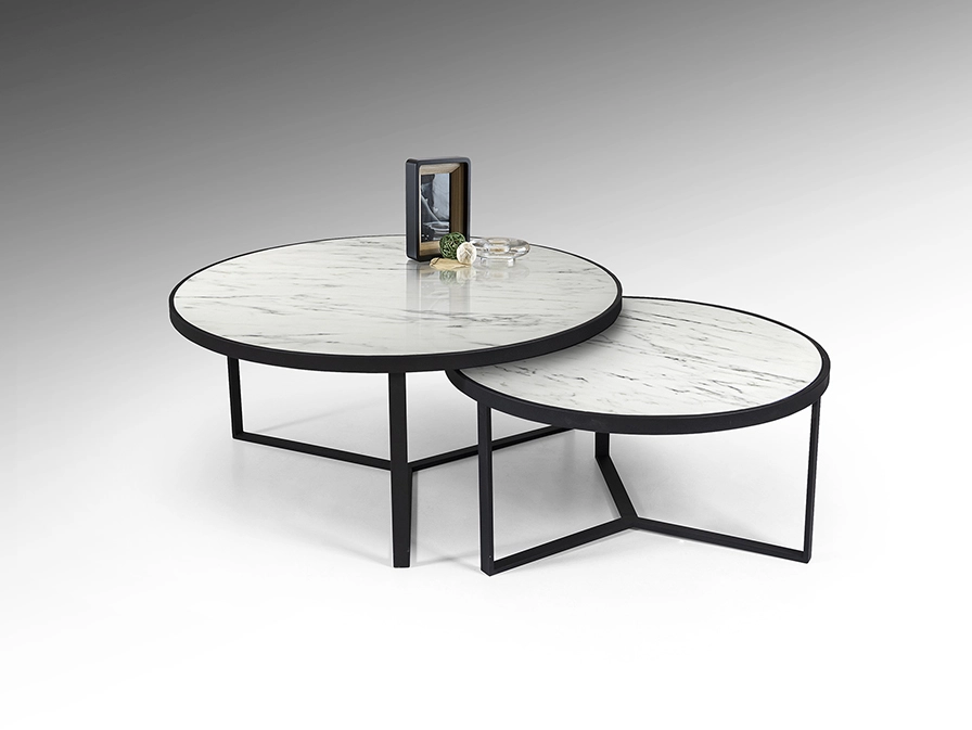 - Conjunto de duas mesas redondas aninháveis