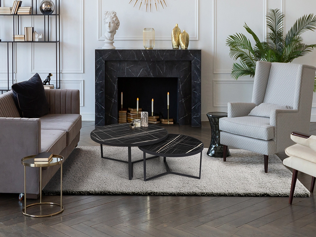 Conjunto de 2 Mesas de centro realizadas em metal, acabamento preto mate.