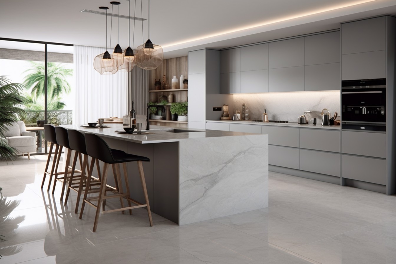 Cozinhas Isabel oferece um design contemporâneo e funcional que transforma a cozinha no coração da casa. Linhas minimalistas e tonalidades neutras criam uma atmosfera elegante e acolhedora, enquanto a ilha central com superfície de aparência marmoreada potencia o convívio e as refeições informais. Os armários integrados proporcionam ampla capacidade de arrumação e mantêm o espaço organizado, facilitando o dia a dia. A iluminação estratégica realça materiais e cria ambientes versáteis para cozinhar, receber e relaxar. Ideal para quem procura estética cuidada e soluções práticas que valorizam o espaço e o bem estar na sua casa.