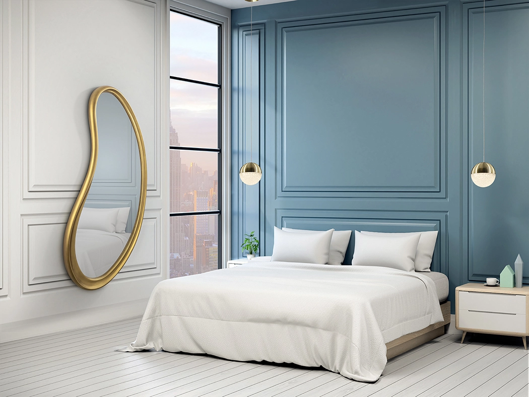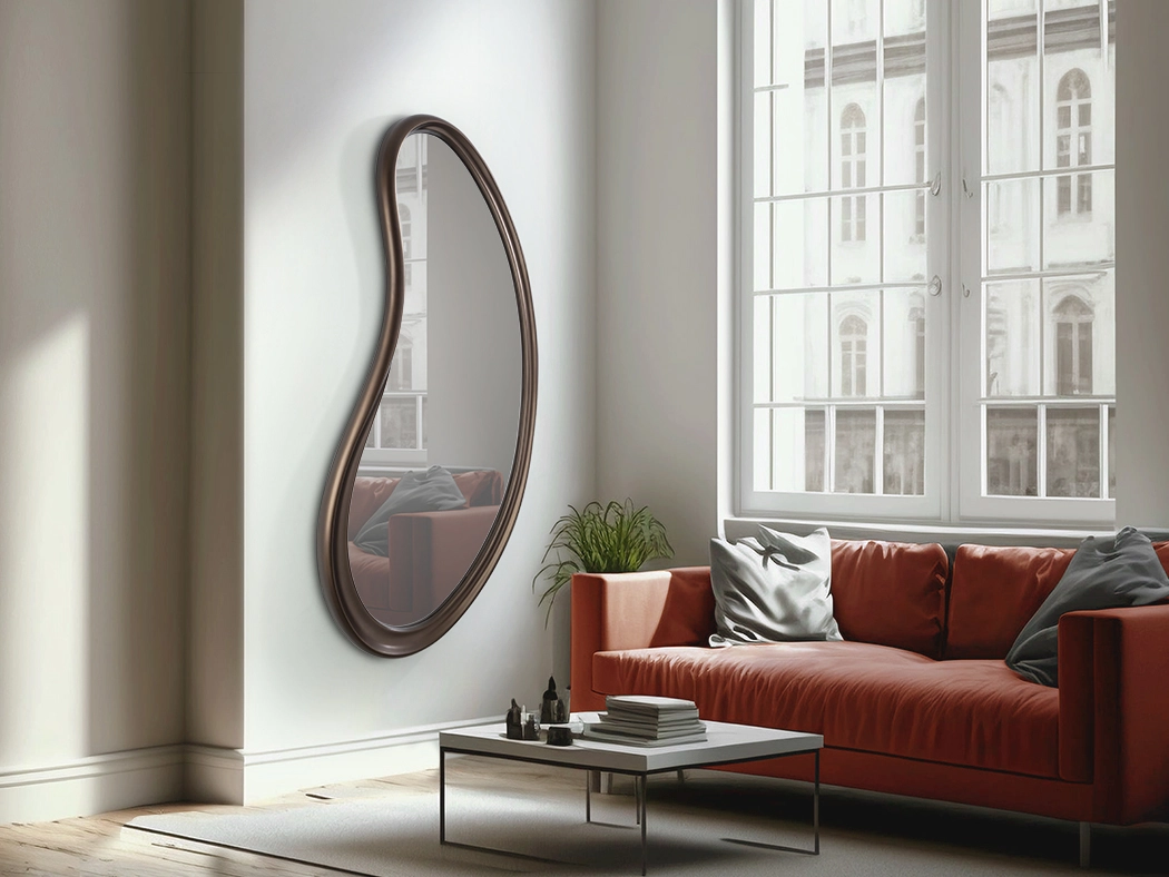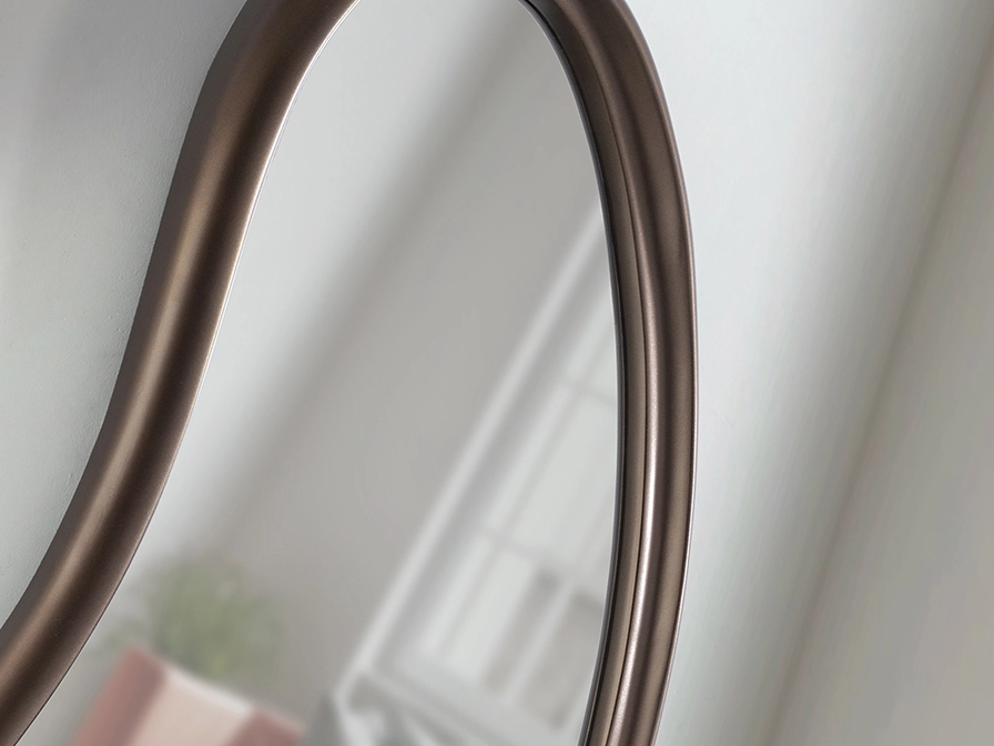 Espelho decorativo, com moldura feita em PU, acabamento folha de ouro, folha bronze escuro ou folha de ouro rosa.
