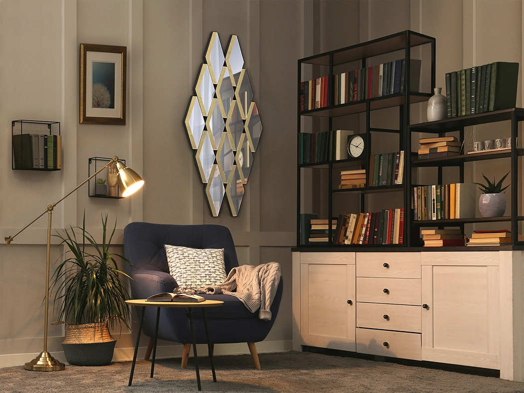 - Funcional e decorativo, aumenta profundidade do ambiente