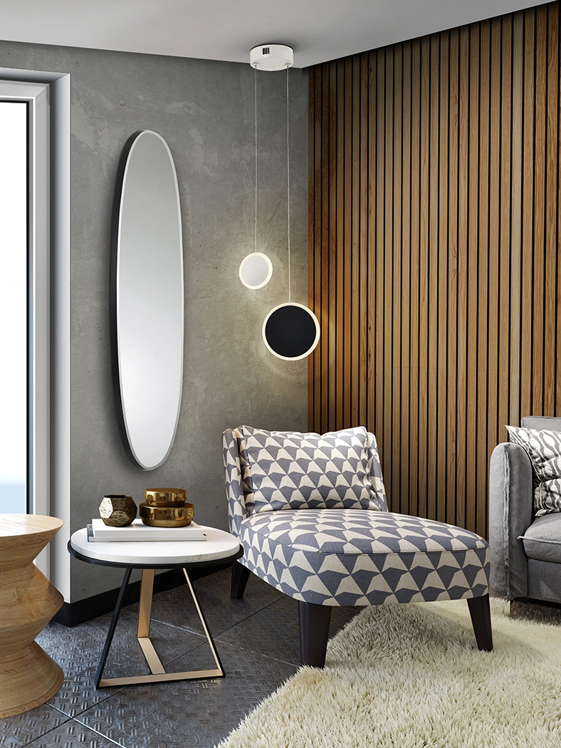 - Formato oval alongado realça a sensação de altura