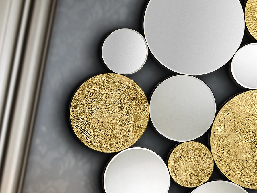 - Círculos espelhados com elementos dourados texturados