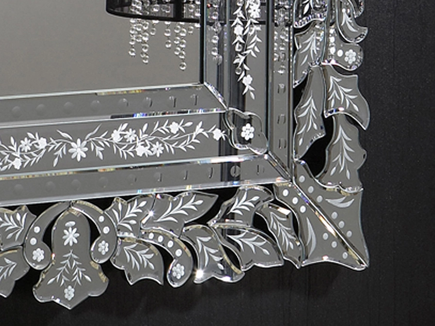 Espelho com moldura de luas biseladas e talhadas.