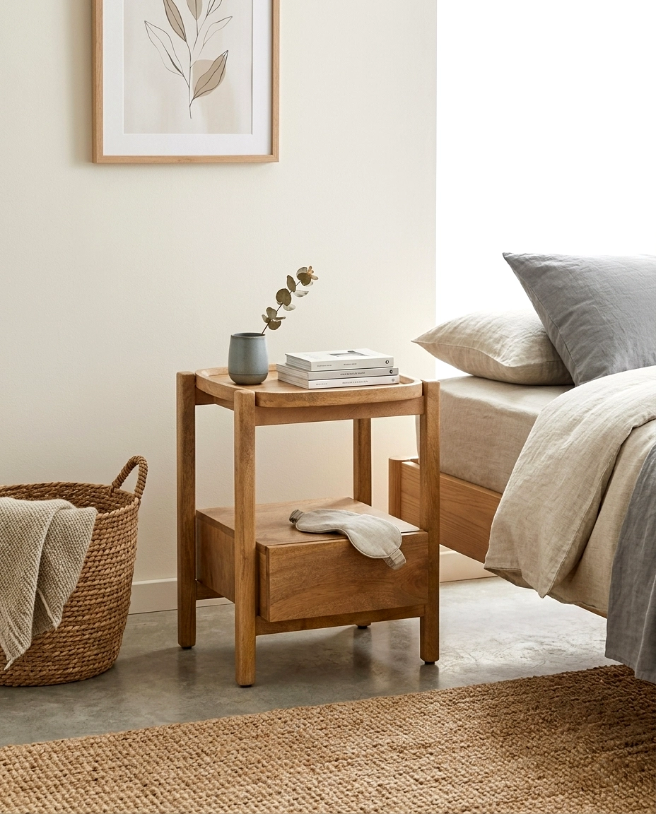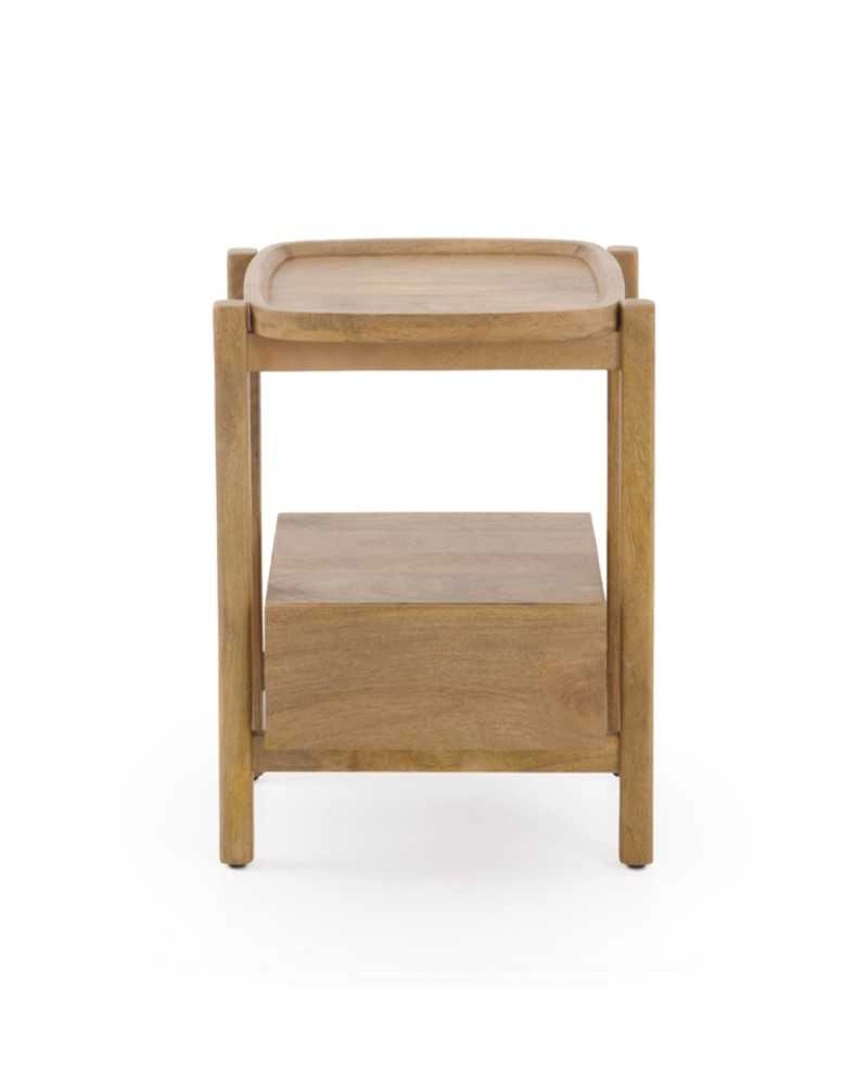 Mesa cabeceira Gliver em madeira de manga.