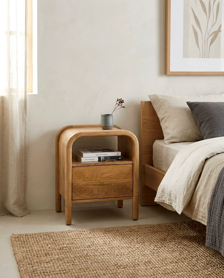 Mesa cabeceira Nitra em madeira de manga.