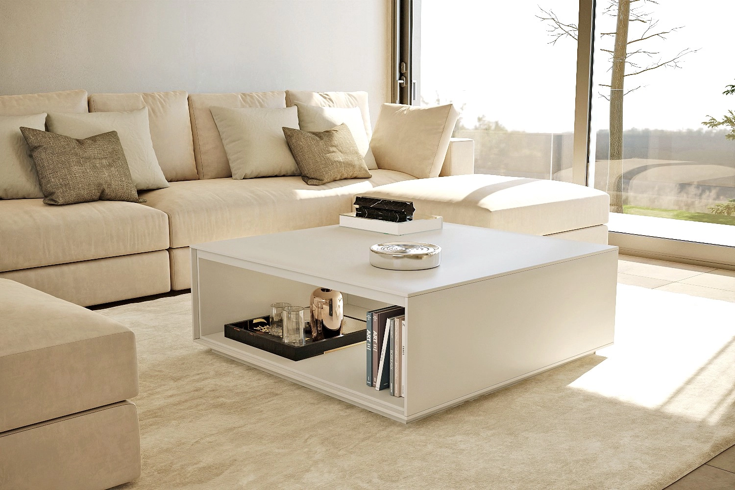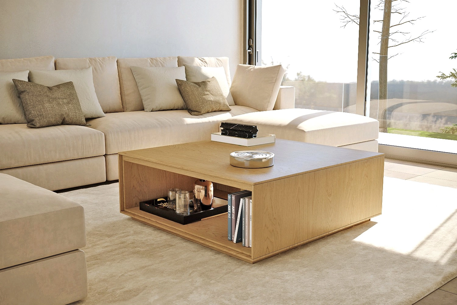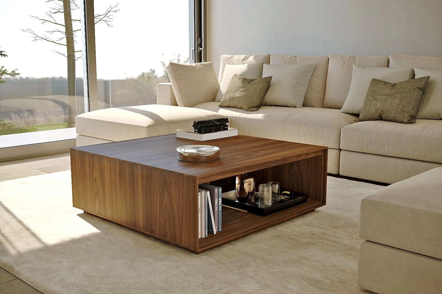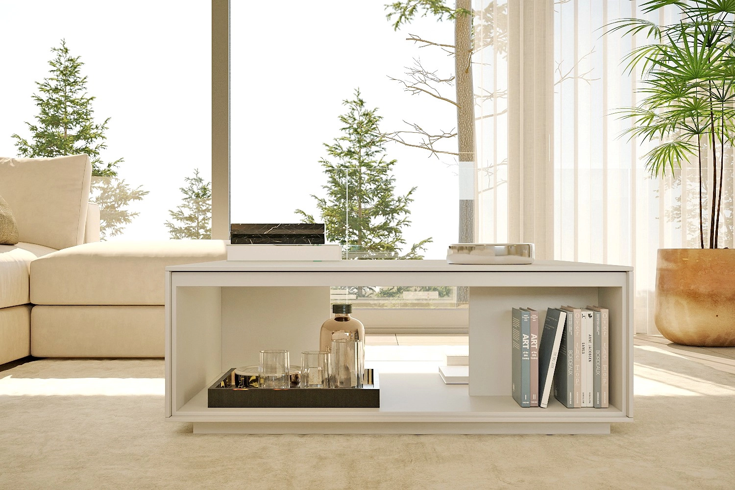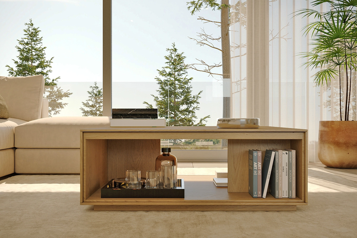 Mesa de centro Nórdica fabricado em folha de madeira natural ou MDF Lacado.