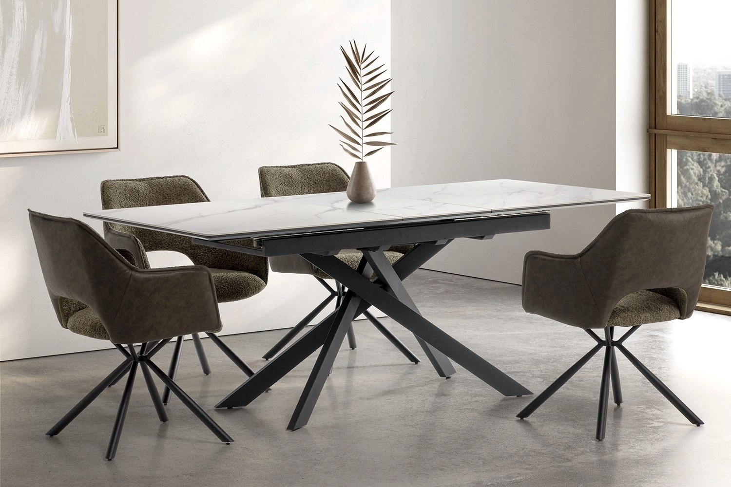 A mesa de jantar Belma extensível combina design contemporâneo com funcionalidade. O tampo claro cria um ponto focal elegante na sala e a base em X confere personalidade e apoio robusto. Extensível com facilidade, adapta-se a jantares íntimos ou encontros maiores por forma a otimizar o espaço quando necessário. Fácil de integrar em ambientes modernos ou clássicos, valoriza a decoração enquanto oferece uma solução prática para receber convidados. Uma escolha versátil que alia presença estética e utilidade diária, ideal para quem procura uma peça central com estilo e flexibilidade.
