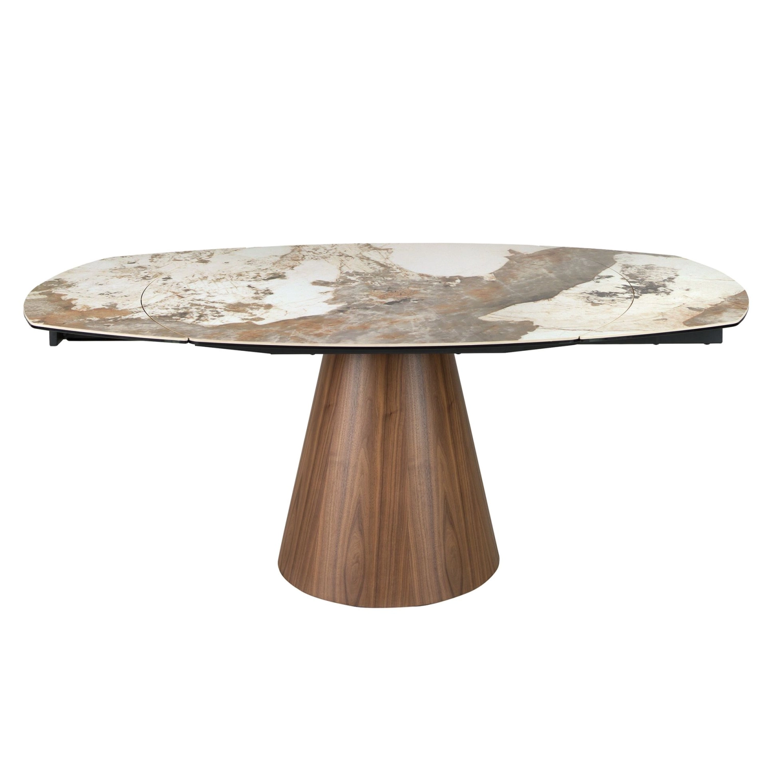 Mesa de jantar extensível Solti oval em forma de barril.
