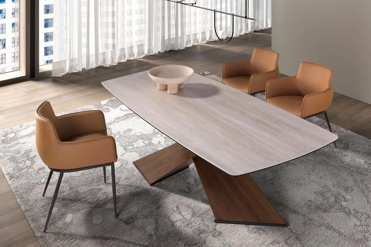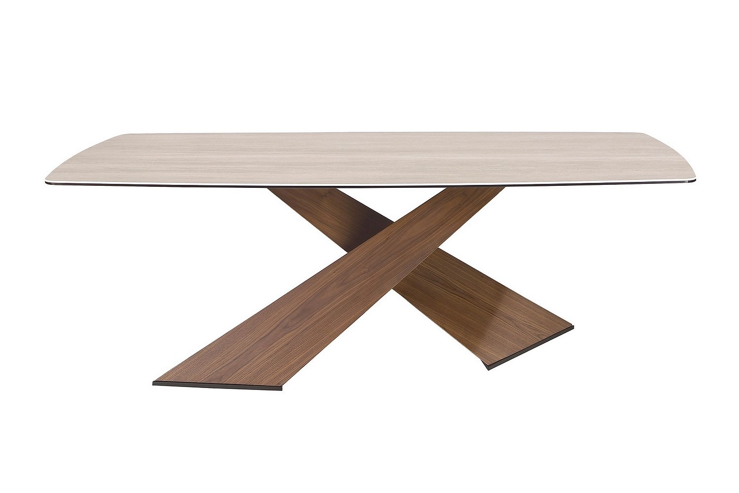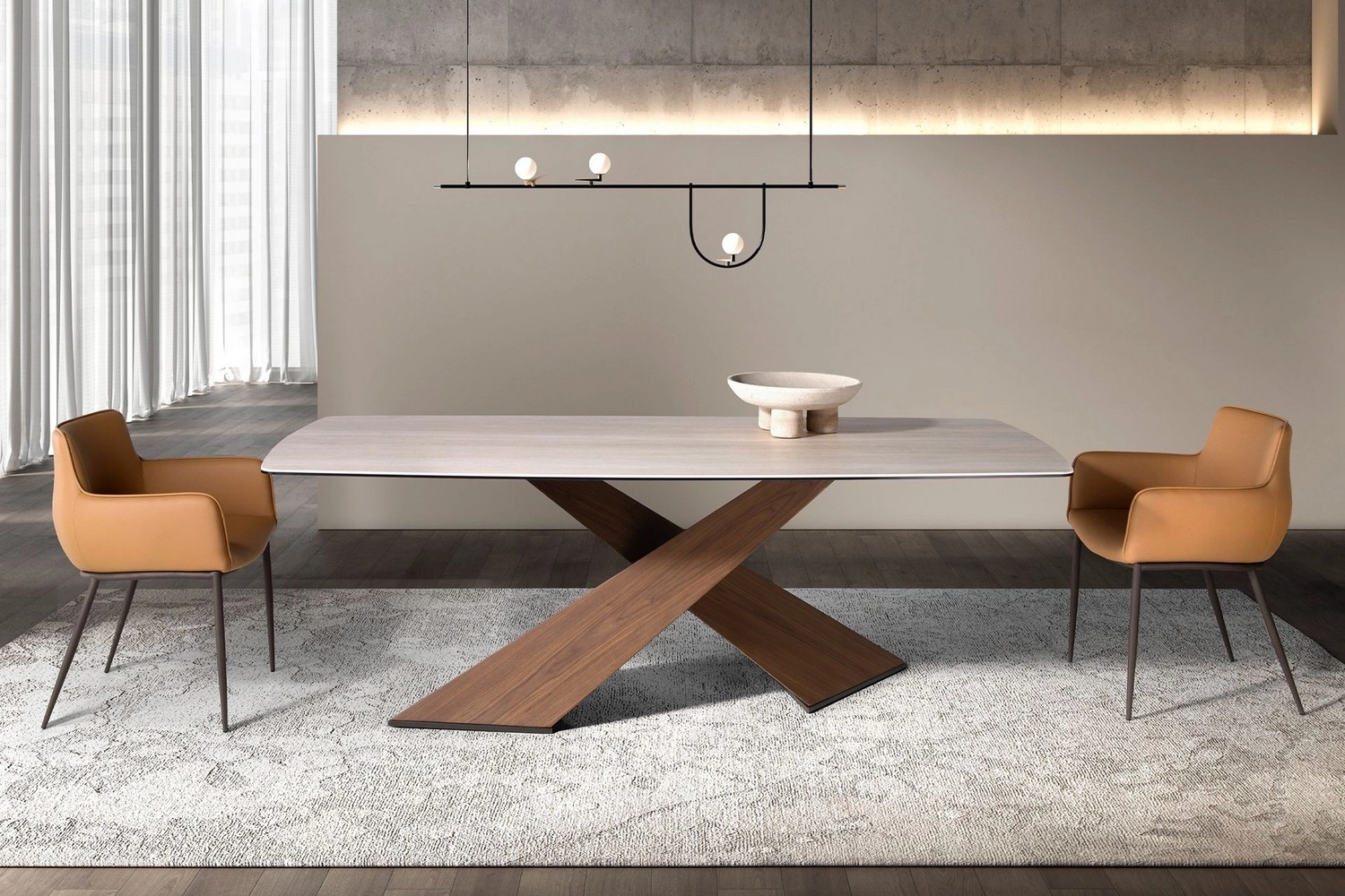 Mesa de jantar Narti traz elegância contemporânea a qualquer sala de refeições. O tampo amplo com cantos suavemente arredondados oferece espaço confortável para jantares em família e convívios com amigos. A base cruzada em madeira cria uma presença marcante e garante estabilidade, ao mesmo tempo que deixa espaço para cadeiras. O acabamento claro do tampo contrasta de forma subtil com a base, integrando-se facilmente em ambientes modernos e clássicos. Fácil de limpar e de manter, esta mesa transforma refeições correntes em momentos especiais e valoriza a decoração com um design equilibrado e intemporal.