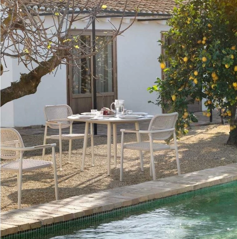 - Diâmetro de 120 cm, acomoda quatro pessoas