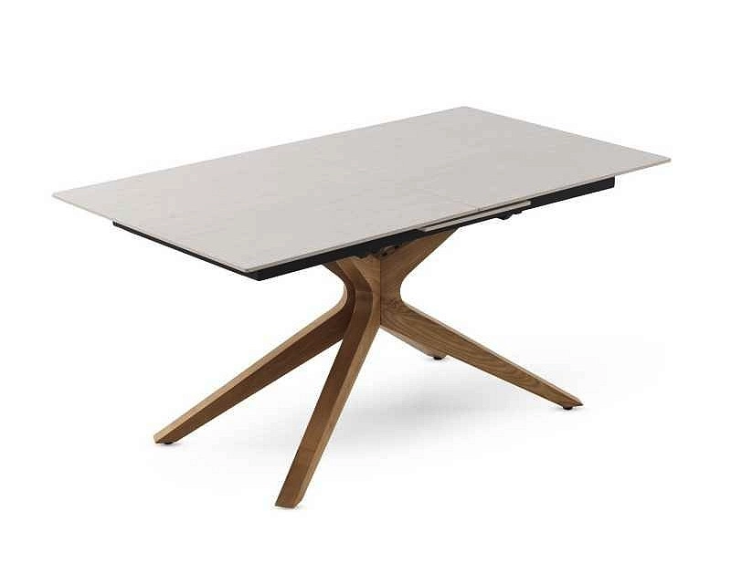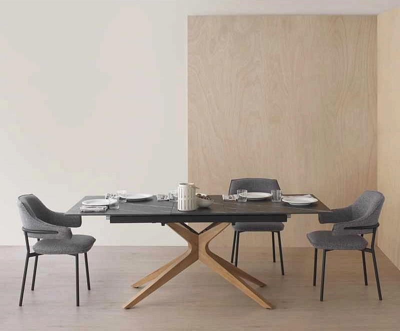 Mesa Jantar Extensível Erna Cerâmica cantos ligeiramente arredondados.