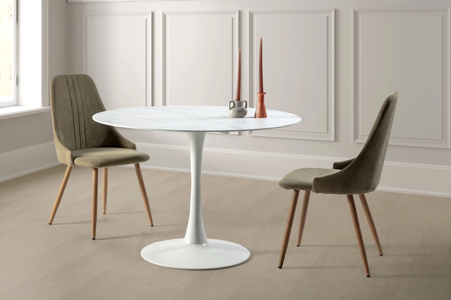 A mesa redonda branca Ada traz elegância e funcionalidade à sua cozinha com um design simples e intemporal. A base central confere estabilidade e facilita a circulação em redor enquanto a superfície luminosa realça a decoração. Ideal para quem procura otimizar espaços sem perder charme, adapta-se a ambientes modernos e clássicos. Fácil de limpar e de manter, oferece uma solução prática para refeições diárias e pequenos convívios. Combine com cadeiras neutras para um look harmonioso ou com peças coloridas para dar personalidade ao espaço. Uma peça versátil que valoriza a sua cozinha.