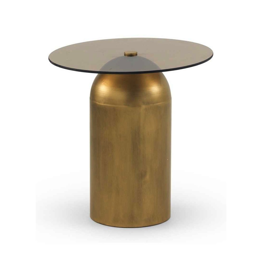 A mesa de apoio Valta com tampo em vidro fumado transparente.
