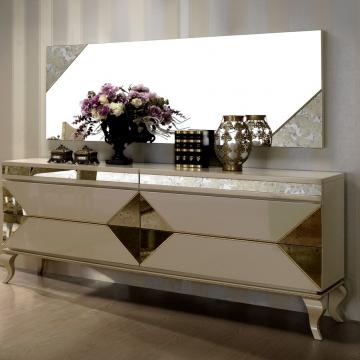 Detalhes em Aço e Vidro Dourados.