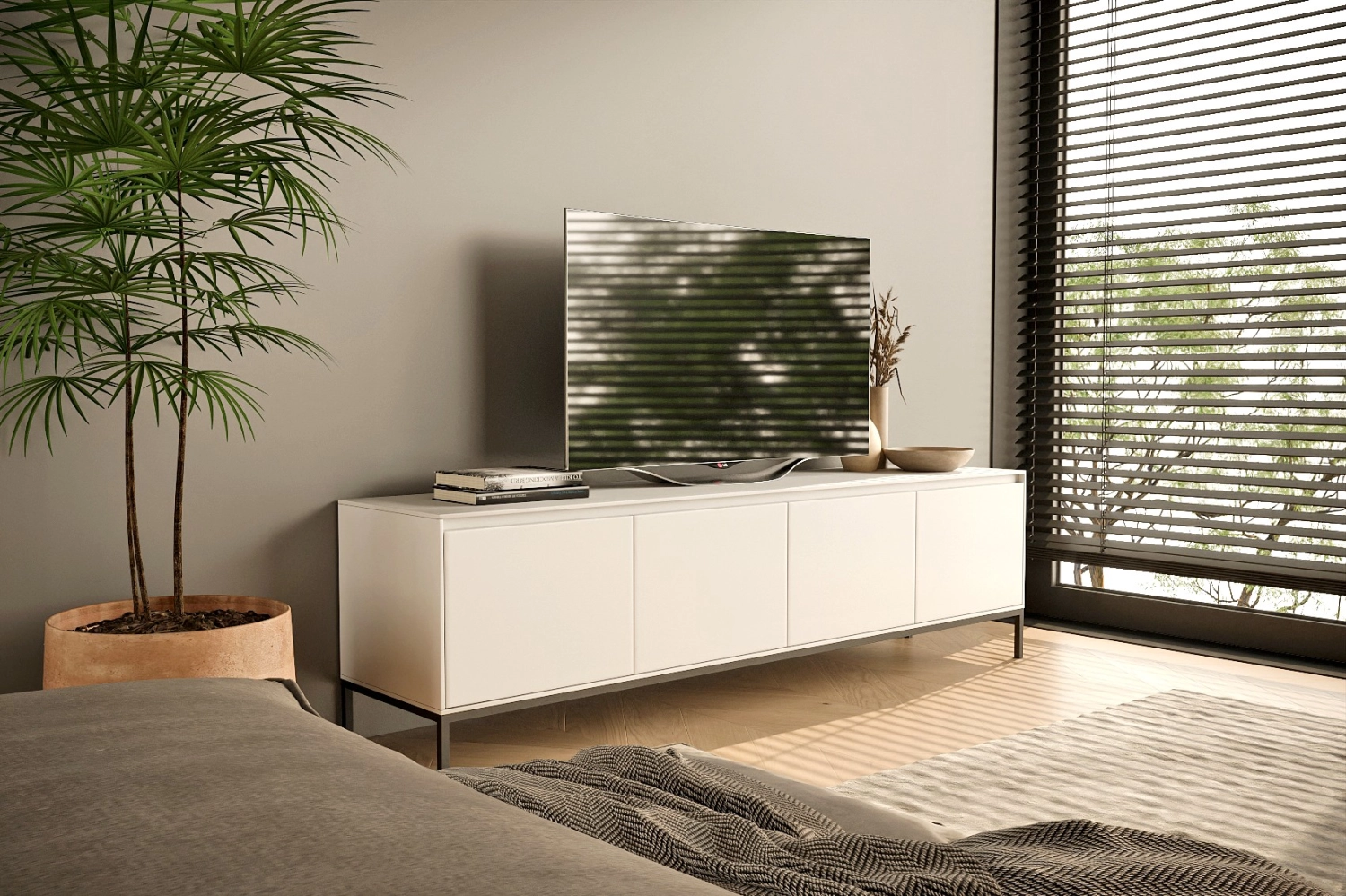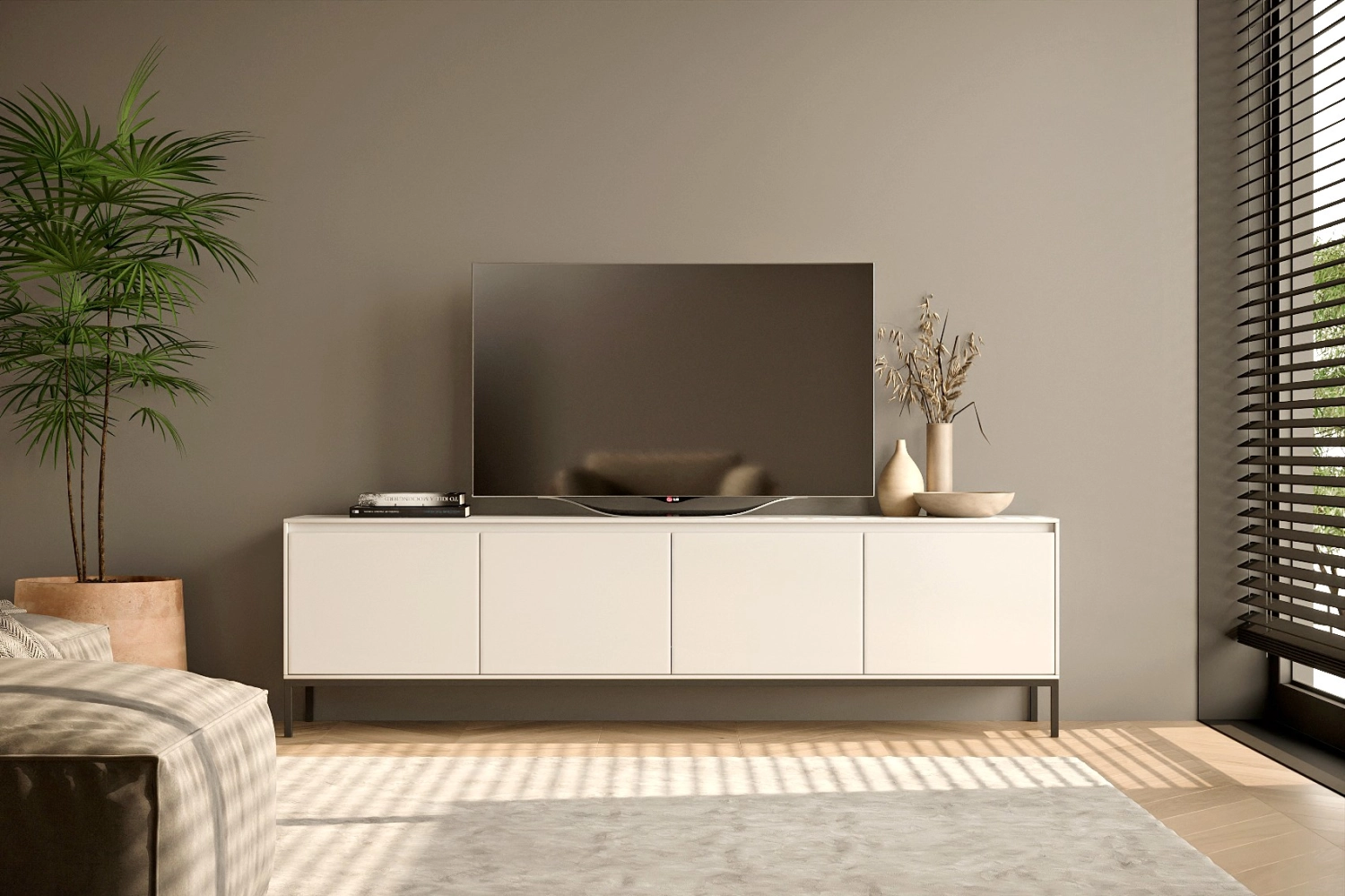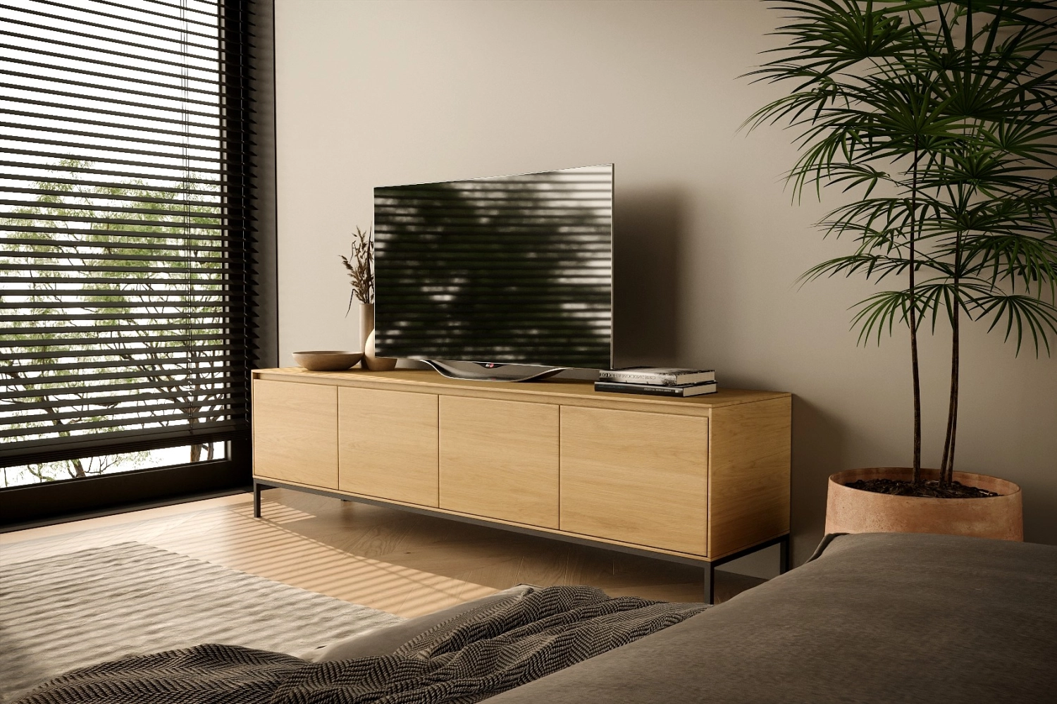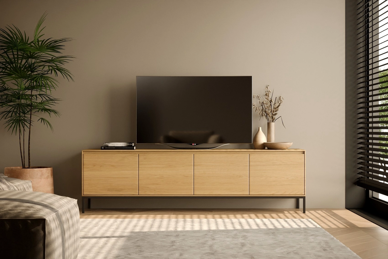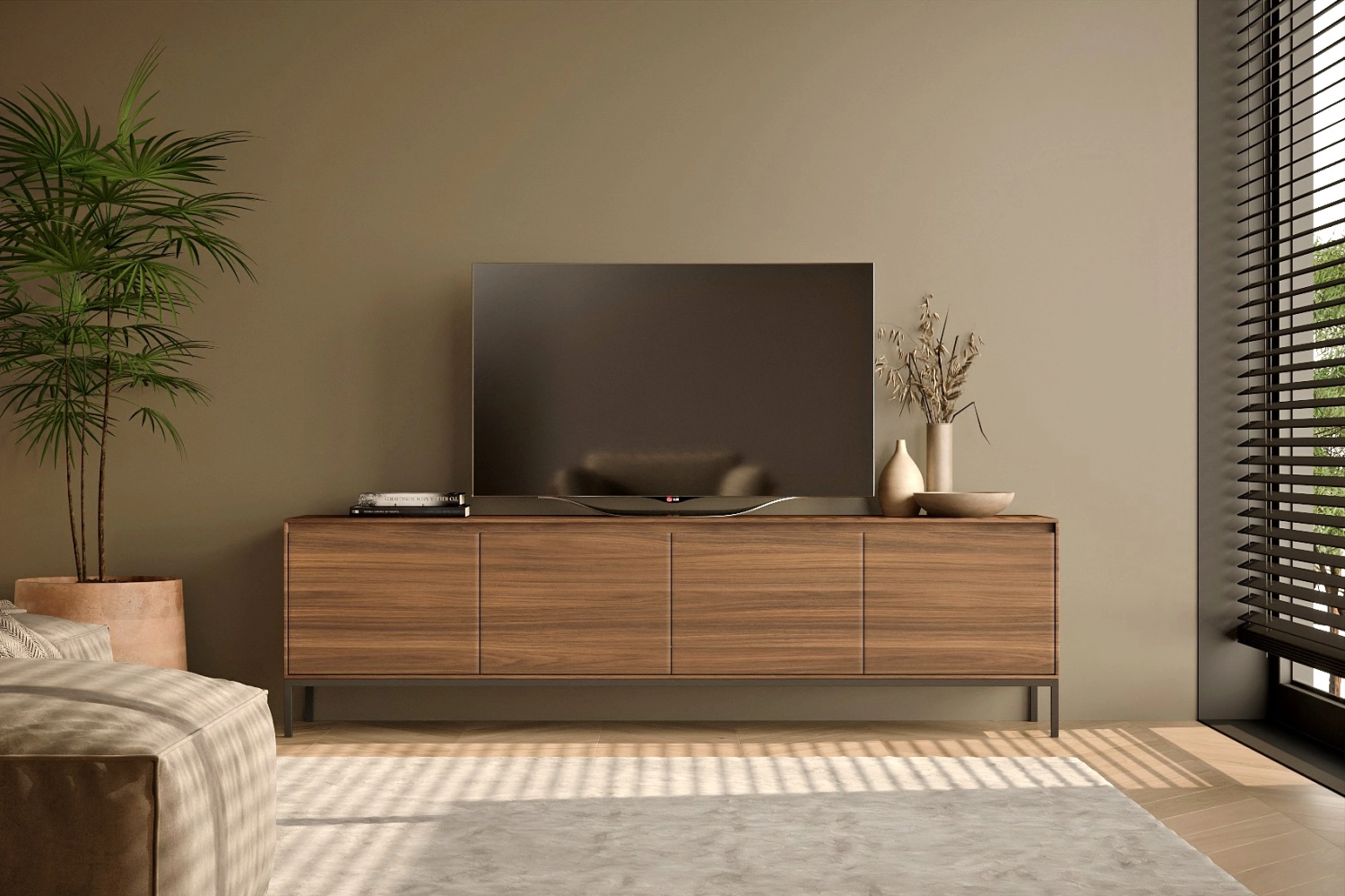 Móvel TV Márcia fabricado em folha de madeira natural ou MDF Lacado.