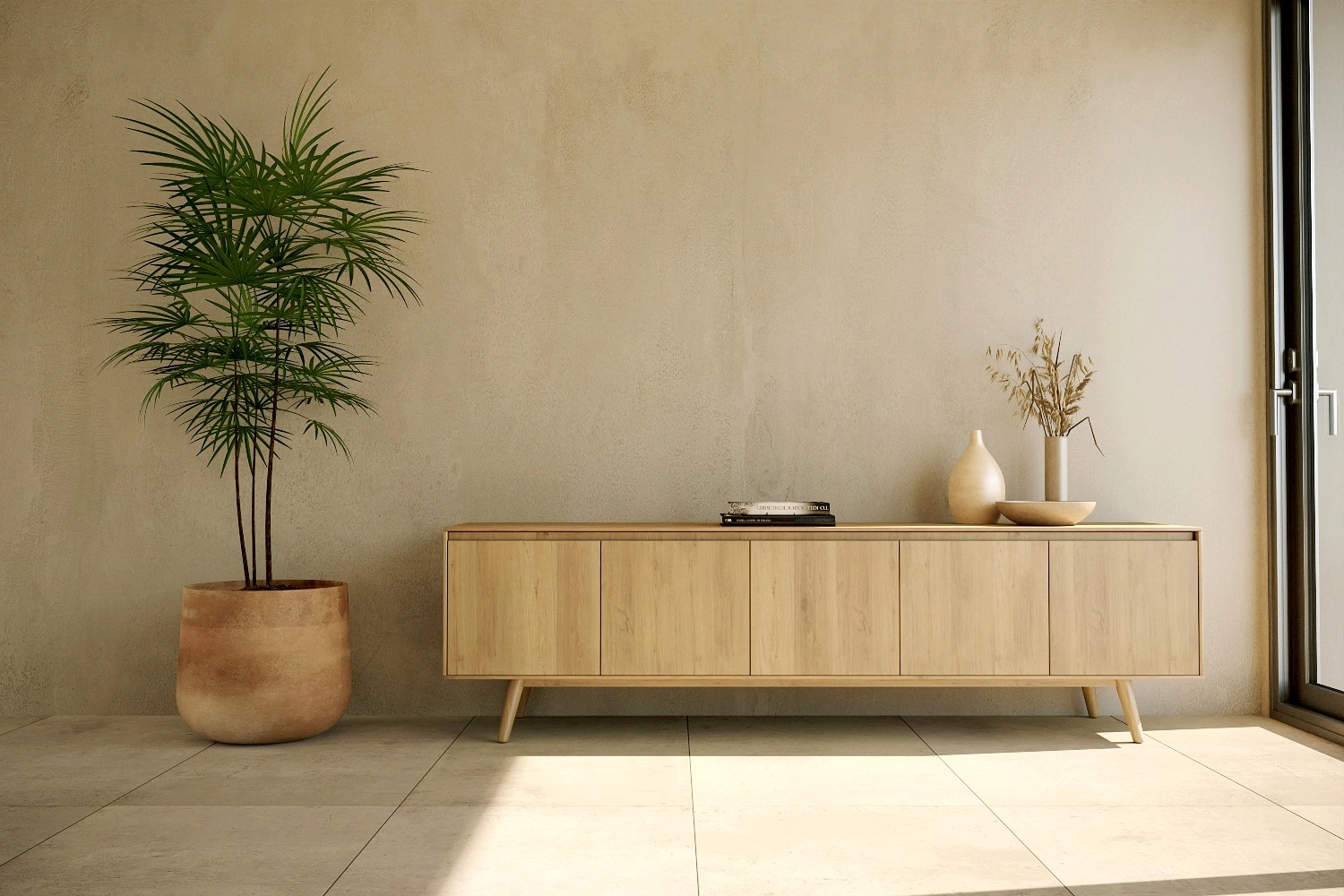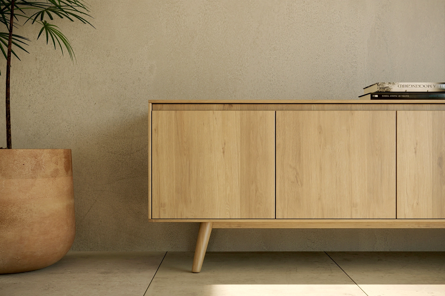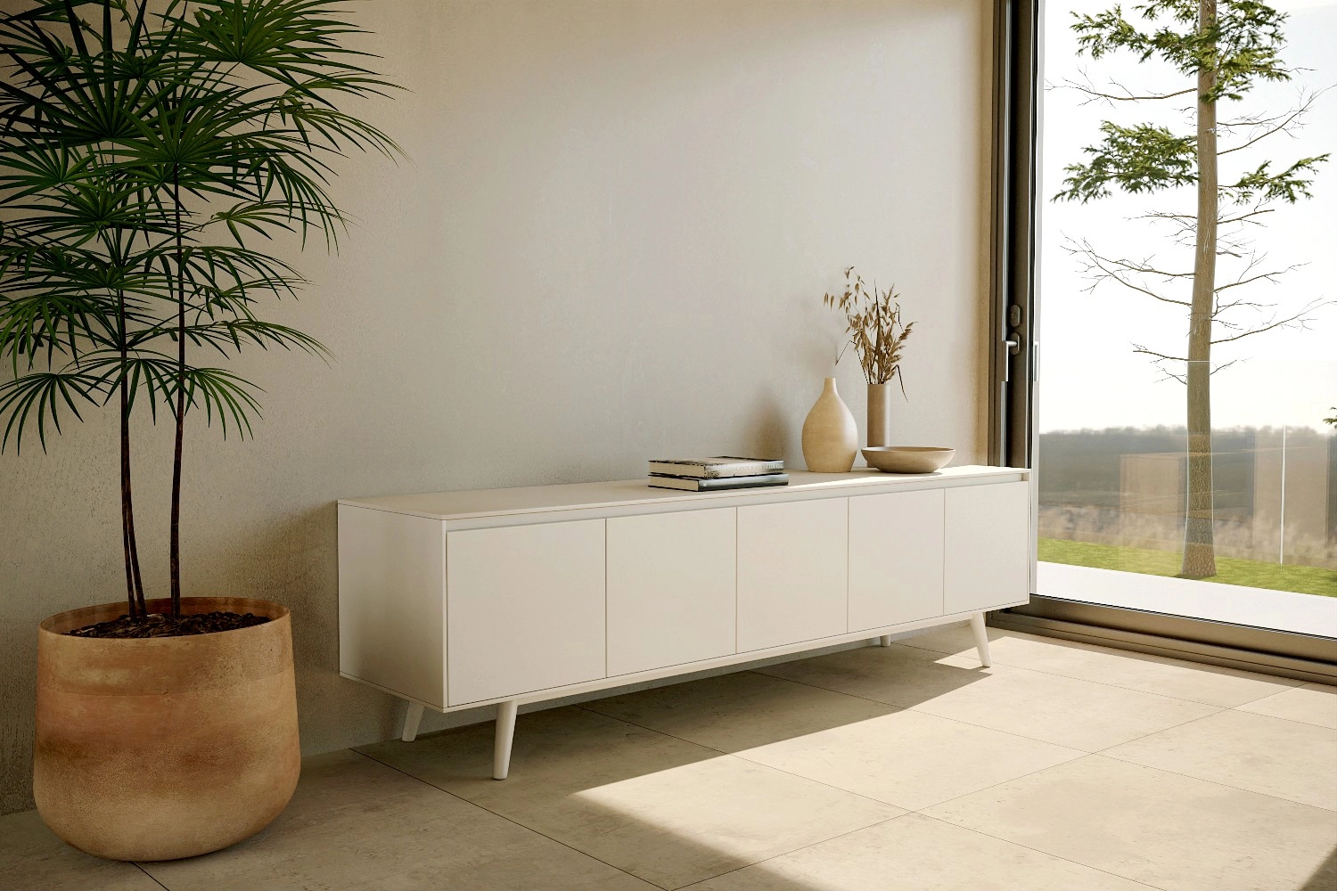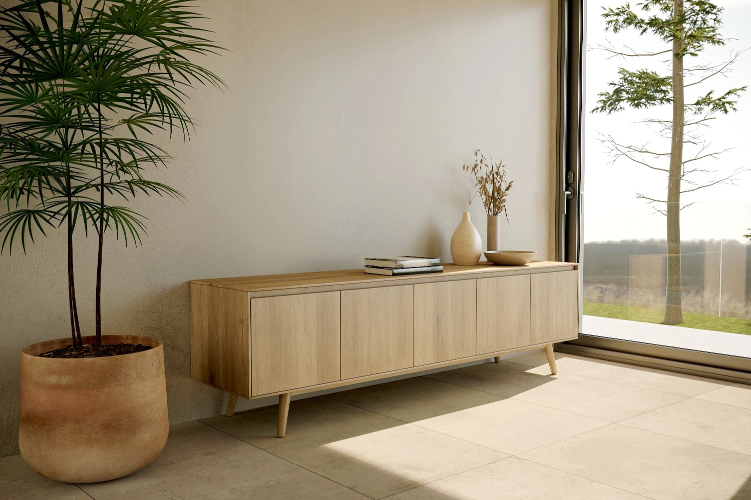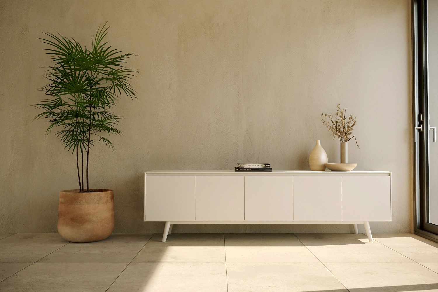 Móvel TV Nórdico com pés fabricado em folha de madeira natural ou MDF Lacado