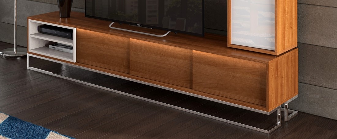 folha de madeira natural. Com estrutura em inox e iluminação Led.