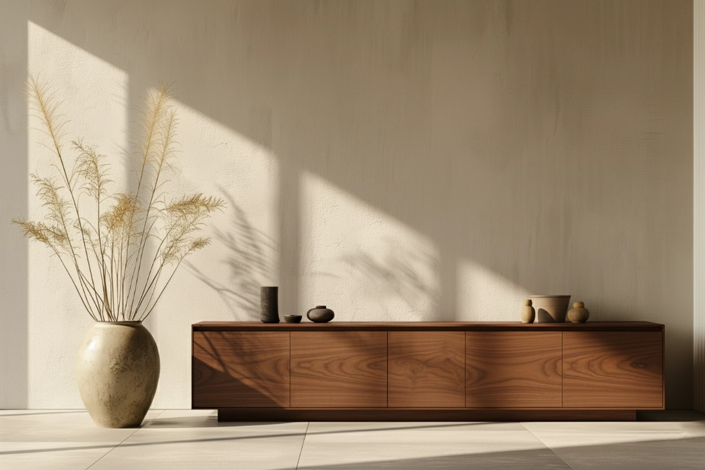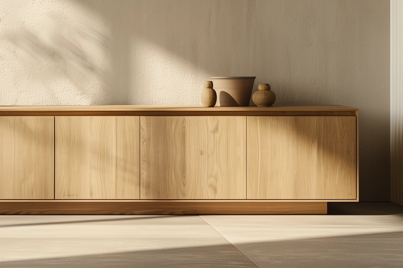 Móvel TV Nórdico fabricado em folha de madeira natural ou MDF Lacado