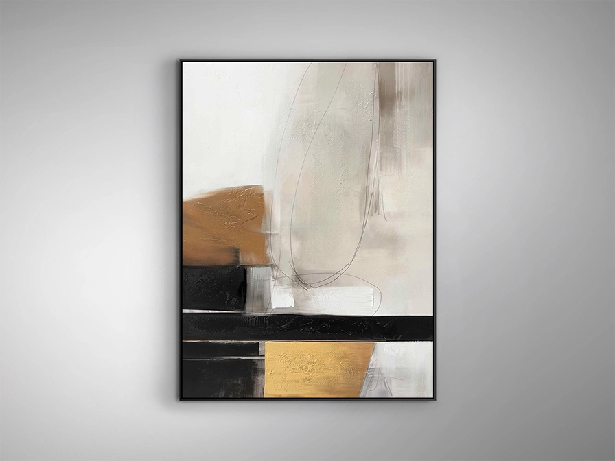 No universo dos quadros para quarto, pintura espacios i traz um toque contemporâneo e elegante ao espaço. Esta obra abstracta combina tons neutros com pontos de mostarda e contrastes em preto e branco, criando profundidade sem sobrecarregar a divisão. Ideal para quem procura uma peça que realça a decoração e harmoniza com estilos variados, desde o minimalista ao moderno. Colocada sobre a cama ou numa parede de destaque, inspira tranquilidade e personalidade, tornando o quarto mais acolhedor e sofisticado. Fácil de integrar em paletas existentes, a pintura espacios i transforma o ambiente e eleva a estética do seu espaço privado.