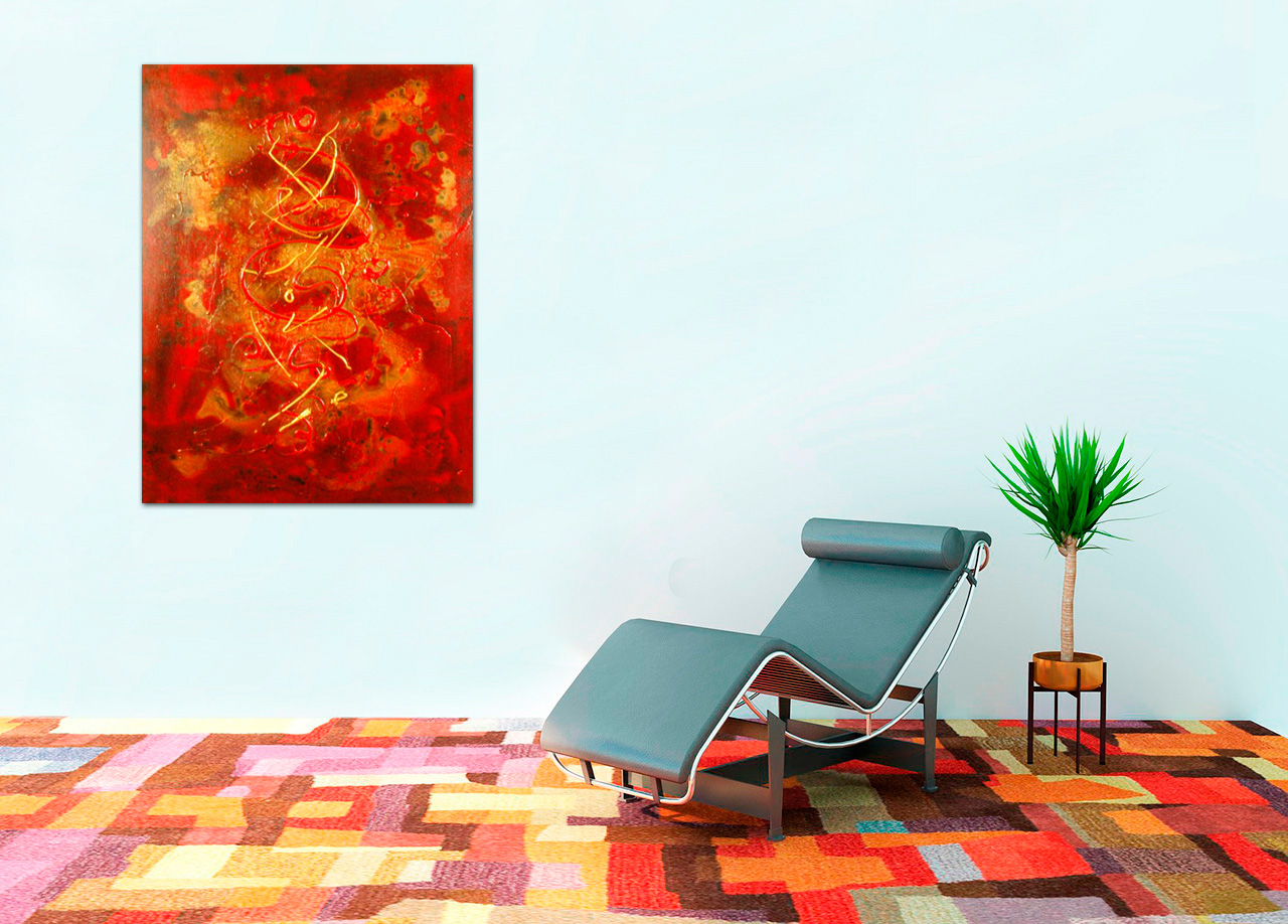 Pintura abstrata em vermelho pintado à mão na medida de 80x60 centímetros. Sua cor impressiona pela força, e seu preço também impressiona com um desconto de 30%. Servimos esta pintura em moldura de madeira e com rebordos pintados, para que quando a receba esteja pronta para ser colocada . Pintura pintada à mão . Prazo de entrega estimado em 4 dias úteis.