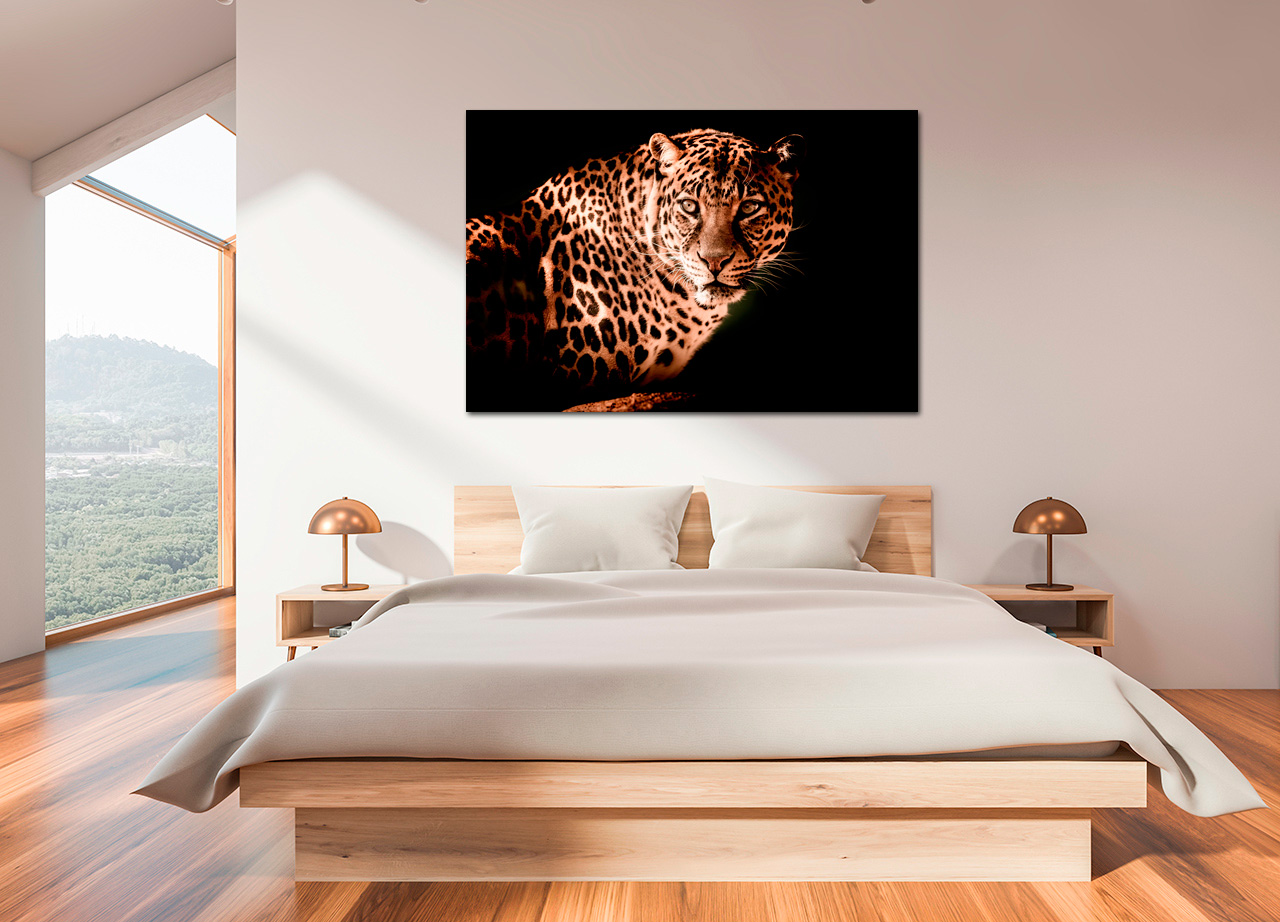 Imagem espetacular e impressionante deste belo felino onde a extraordinária qualidade da fotografia destaca exponencialmente o close-up deste Leopardo. Esta pintura é impressa sobre tela e nós a enviamos esticada sobre uma moldura de madeira com a imagem continuando nas bordas para que não precise ser emoldurada . Garantimos esta pintura impressa contra o desbotamento solar dentro de sua casa ou escritório .