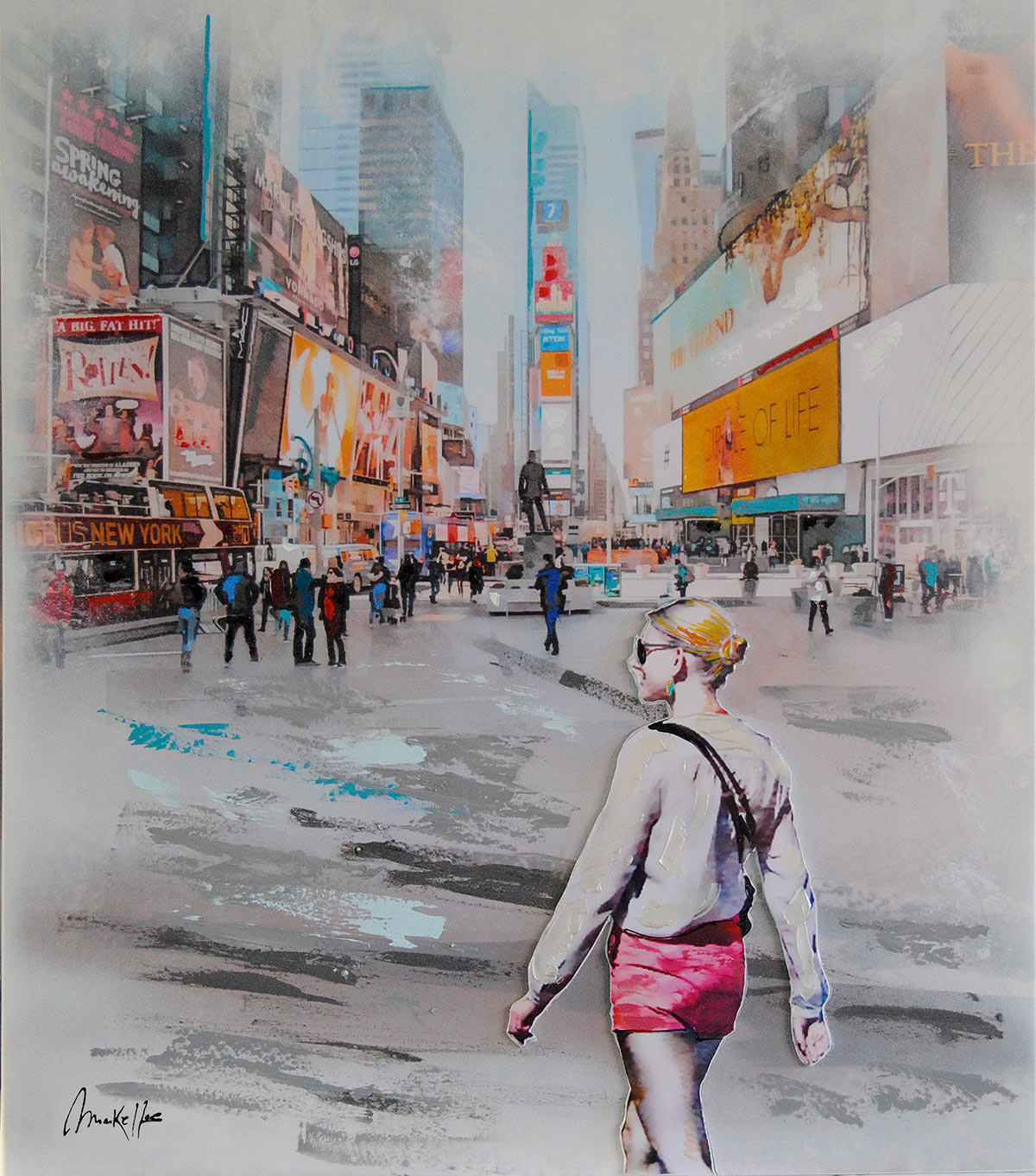 New York a pintura impressos em lona e retocado à mão, esta pintura transmite muito a atmosfera de Nova York que é percebido na bem conhecida Times Square Squard, onde, em muitos casos, os enormes cartazes quase cobrir completamente as fachadas dos arranha-céus . Esta pintura é impresso em lona e servimos se estendia em um 3 cm moldura de madeira grossa, a imagem continua em torno das bordas para que ele não precisa de ser enquadrado, deve-se notar que este impresso pintura, o sta arte ele vai dar alguns pintados toca em áreas relevantes para que, desta forma, o sentido artístico da pintura seja realçado.