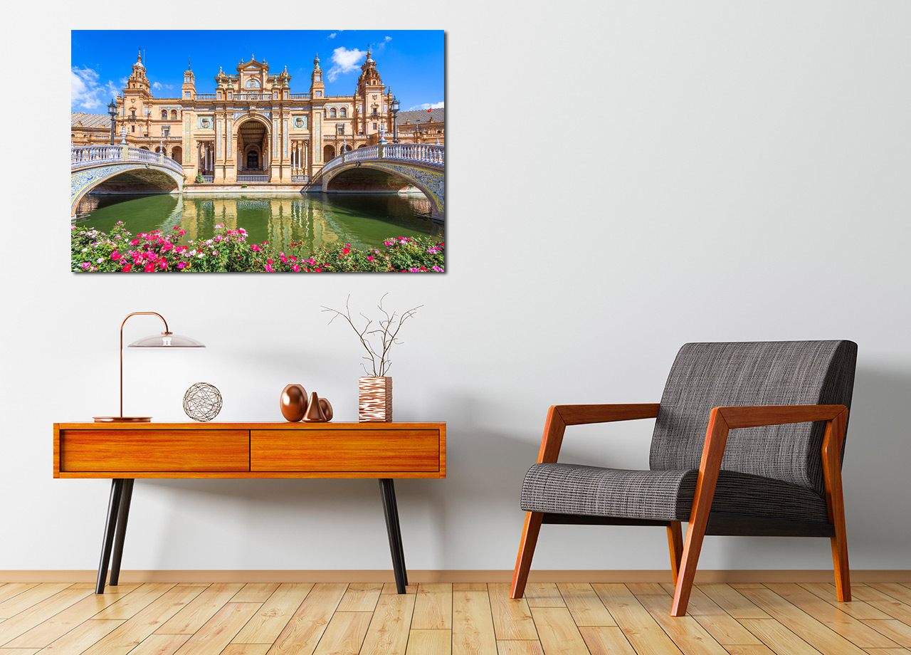 Imagem de Sevilha, detalhe da bela e elegante Plaza de Espa a Sevilha com seus clássicos mosaicos de azulejos e sua arquitetura imponente e bem preservada onde a beleza do lugar é tão imensa que quem vai uma só vez, sempre vai se lembrar com enorme agradável, é um autêntico prazer para os sentidos . Esta pintura é impresso em lona e servimos-lo envolto em um 3cms moldura grossa de madeira com a contínua ao redor da imagem, de modo que (você recebê-lo pronto para pendurar) . prazo esperado entrega em 10 dias úteis.
