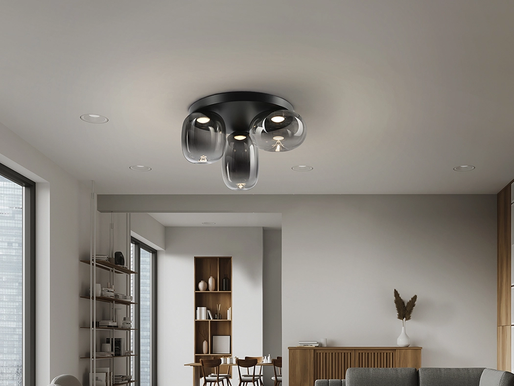 Com linhas contemporâneas e uma presença discreta, o plafon onice transforma o tecto numa peça de estilo que valoriza o ambiente. As tulipas em vidro fumado criam uma luz suave e difusa que promove conforto visual e uma atmosfera acolhedora. A base preta integra-se com facilidade em decoração moderna, acrescentando sofisticação sem roubar protagonismo. Ideal para sala de estar, entrada ou quarto, adapta-se a espaços que precisam de iluminação elegante e poupança de espaço. Fácil de combinar com outros elementos, realça texturas e cores do espaço para um resultado harmonioso.