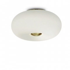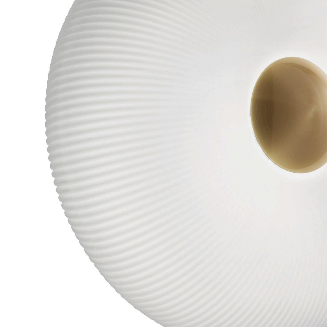 Difusor em vidro soprado branco e com faixas decorativas em relevo.