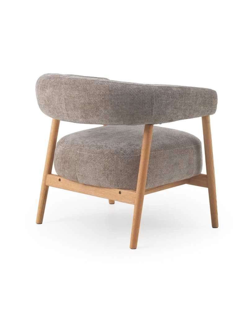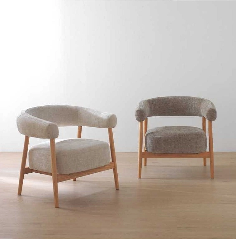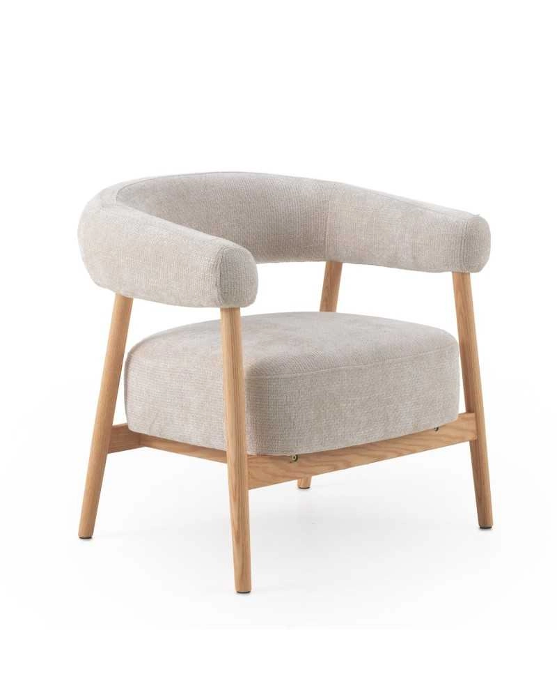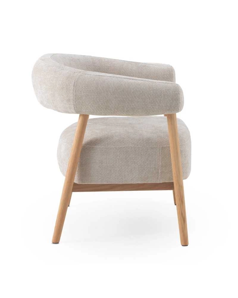 Encosto e o assento, estofados em tecido macio e disponíveis em dois tons neutros de taupe e branco.