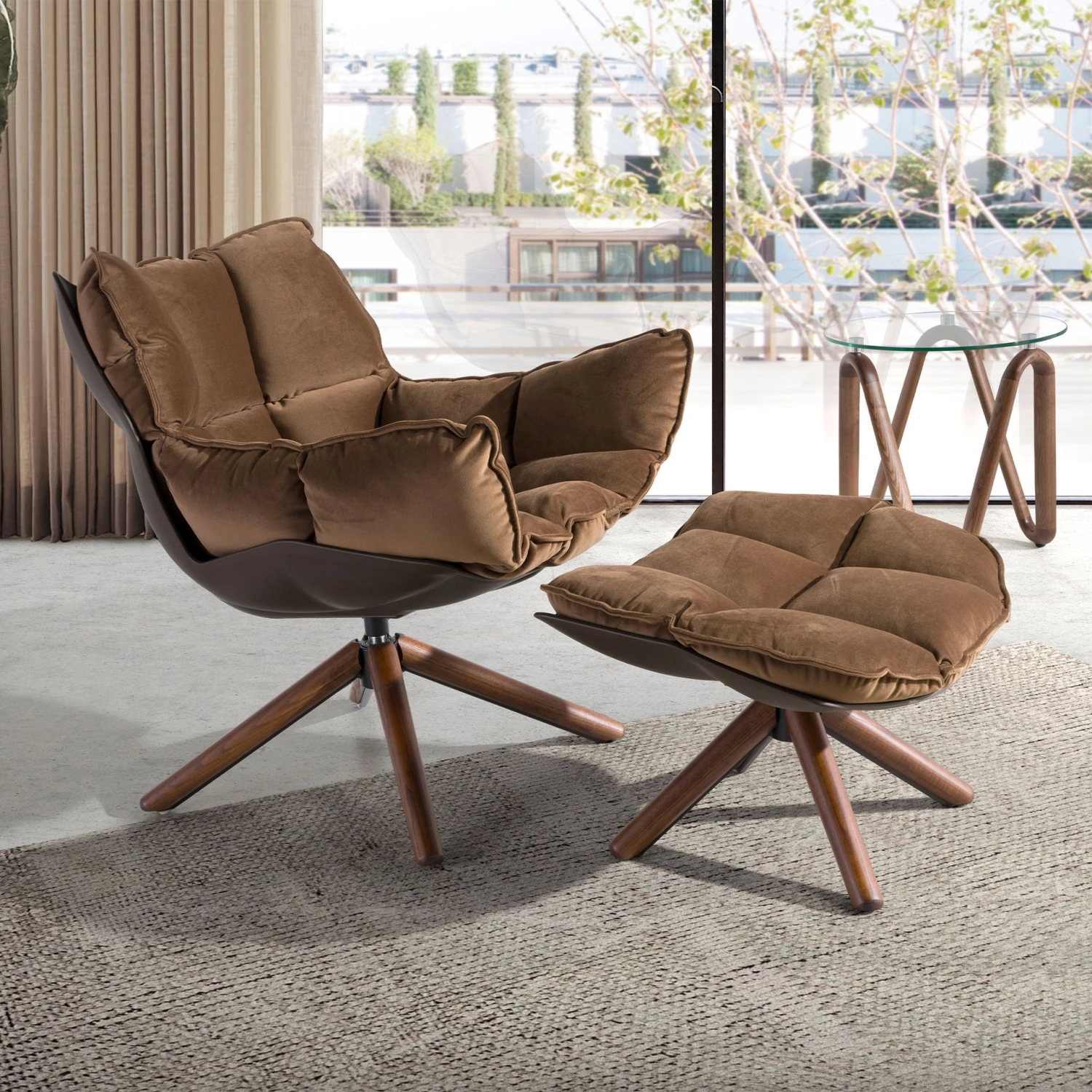 Poltrona com repousa pés giratória de design moderno com assento e encosto