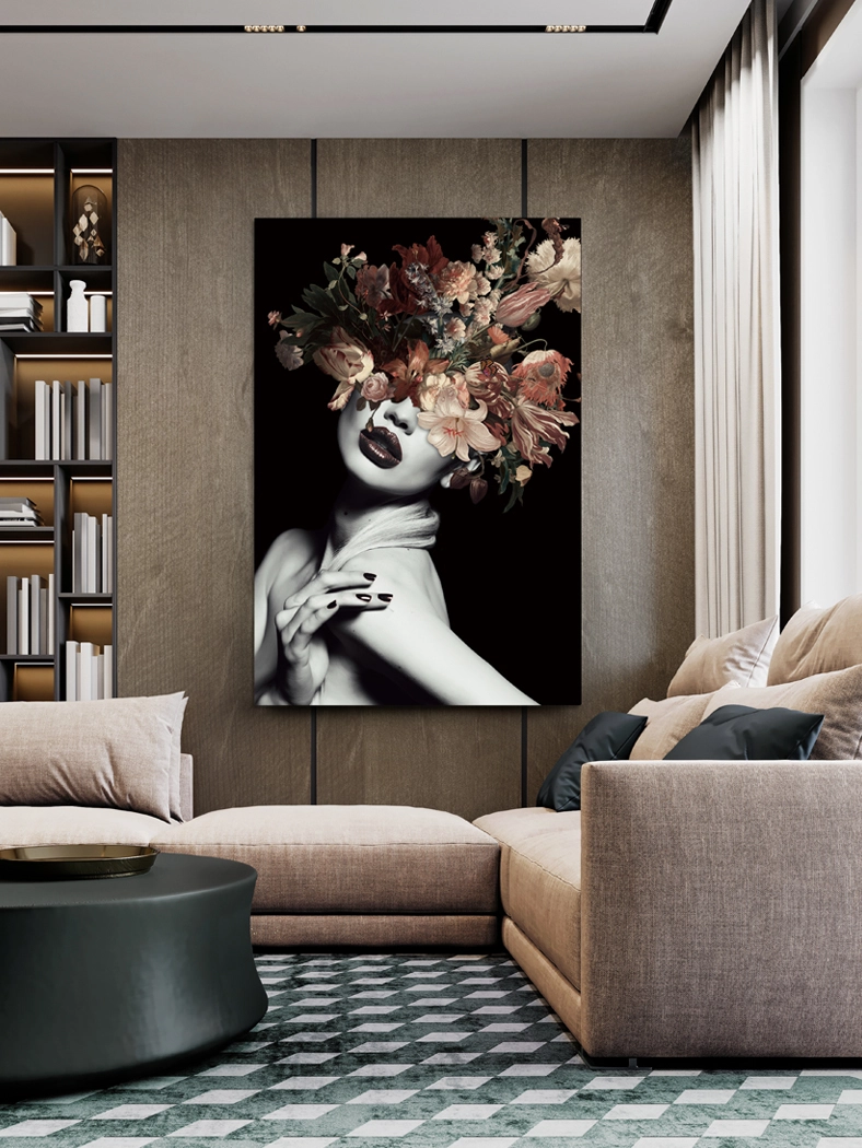 - Contraste de tons escuros com arranjo floral