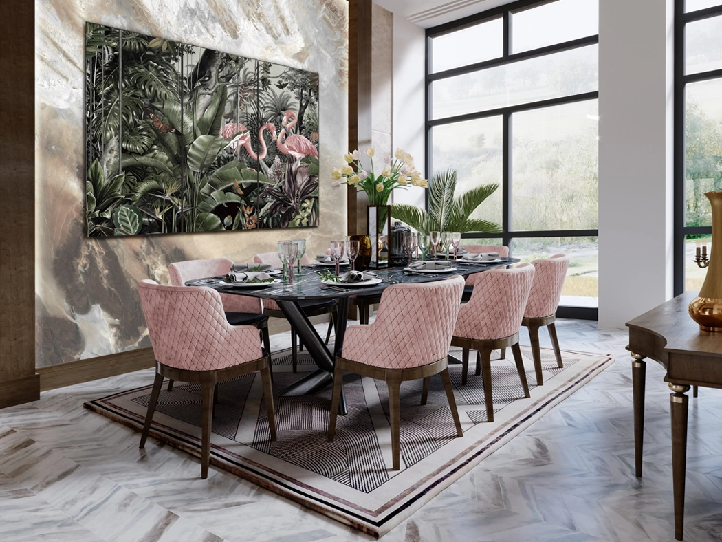 O quadro triptico flamencos transforma o seu espaço numa paisagem tropical contemporânea. As silhuetas de flamingos e a folhagem exuberante acrescentam cor e profundidade, criando um ponto focal elegante que valoriza paredes sobre a mesa de jantar ou o sofá. Perfeito para quem procura um toque sofisticado sem perder a sensação acolhedora, este conjunto ajuda a harmonizar tons rosa e verde presentes no ambiente. Fácil de integrar em diferentes estilos decorativos, revela-se uma escolha versátil para quadros para sala e contribui para um espaço mais convidativo e com personalidade.