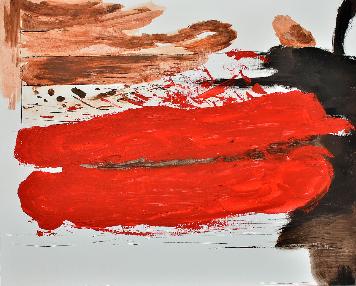 Pintura abstrata vermelha pintada à mão de estilo vanguardista.
