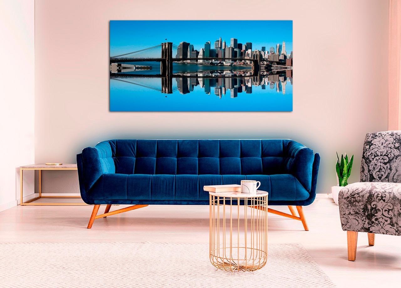 Este quadro cidade simétrica traz uma imagem urbana refletida que acrescenta profundidade e equilíbrio à sua decoração. Os tons de azul e a composição espelhada criam uma sensação de calma e sofisticação, ideal para transformar a sala, escritório ou hall de entrada num ambiente moderno e acolhedor. Como peça central discreta, valoriza móveis e paredes sem competir com outros elementos. Fácil de integrar em diferentes estilos decorativos, oferece um impacto visual imediato que amplia o espaço e convida à contemplação. Uma escolha elegante para quem procura personalidade e harmonia no ambiente.