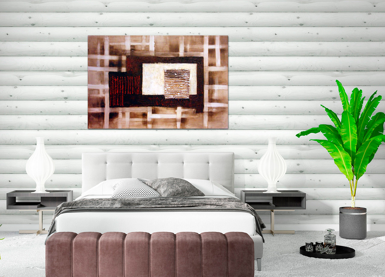 Quadro laboral integra a coleção de quadros abstratos com composição geométrica e tons terrosos que adicionam sofisticação ao espaço. A peça cria um ponto focal discreto e contemporâneo ideal para cabeceiras, escritórios ou salas de estar. Os contrastes suaves entre branco, castanho e preto acrescentam profundidade sem sobrecarregar a decoração, promovendo um ambiente sereno e inspirador. Fácil de integrar em vários estilos, este quadro valoriza móveis neutros e realça a sensação de profissionalismo e criatividade no espaço. Uma escolha versátil para quem procura arte moderna que traz carácter e equilíbrio ao lar ou local de trabalho.