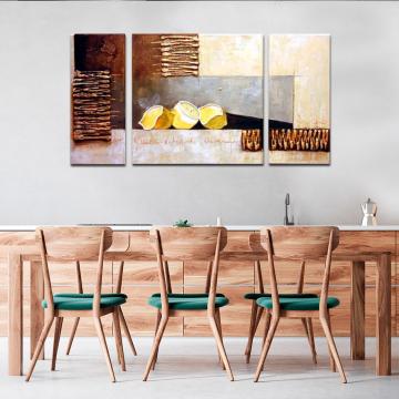 Quadro para cozinha lemons in water traz frescura e personalidade ao espaço. A imagem de limões a mergulhar numa explosão de água sobre fundo preto cria um contraste vibrante que capta o olhar e ilumina paredes neutras. Este motivo acrescenta energia e sofisticação ao espaço, transformando a parede num ponto focal que convida à conversa e inspira momentos à volta da mesa. Fácil de integrar em cozinhas contemporâneas ou rústicas, combina particularmente bem com tons de madeira e superfícies brancas. Uma solução decorativa para quem procura renovar o ambiente com estilo e um toque de cor.