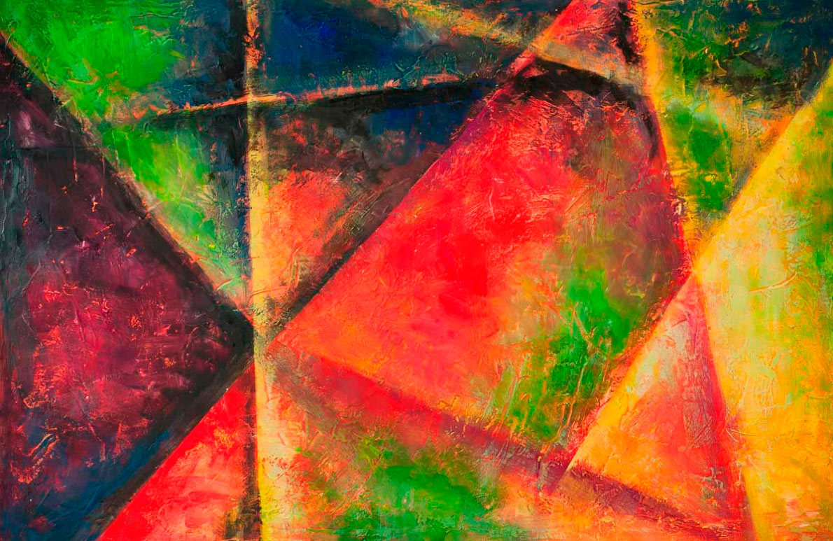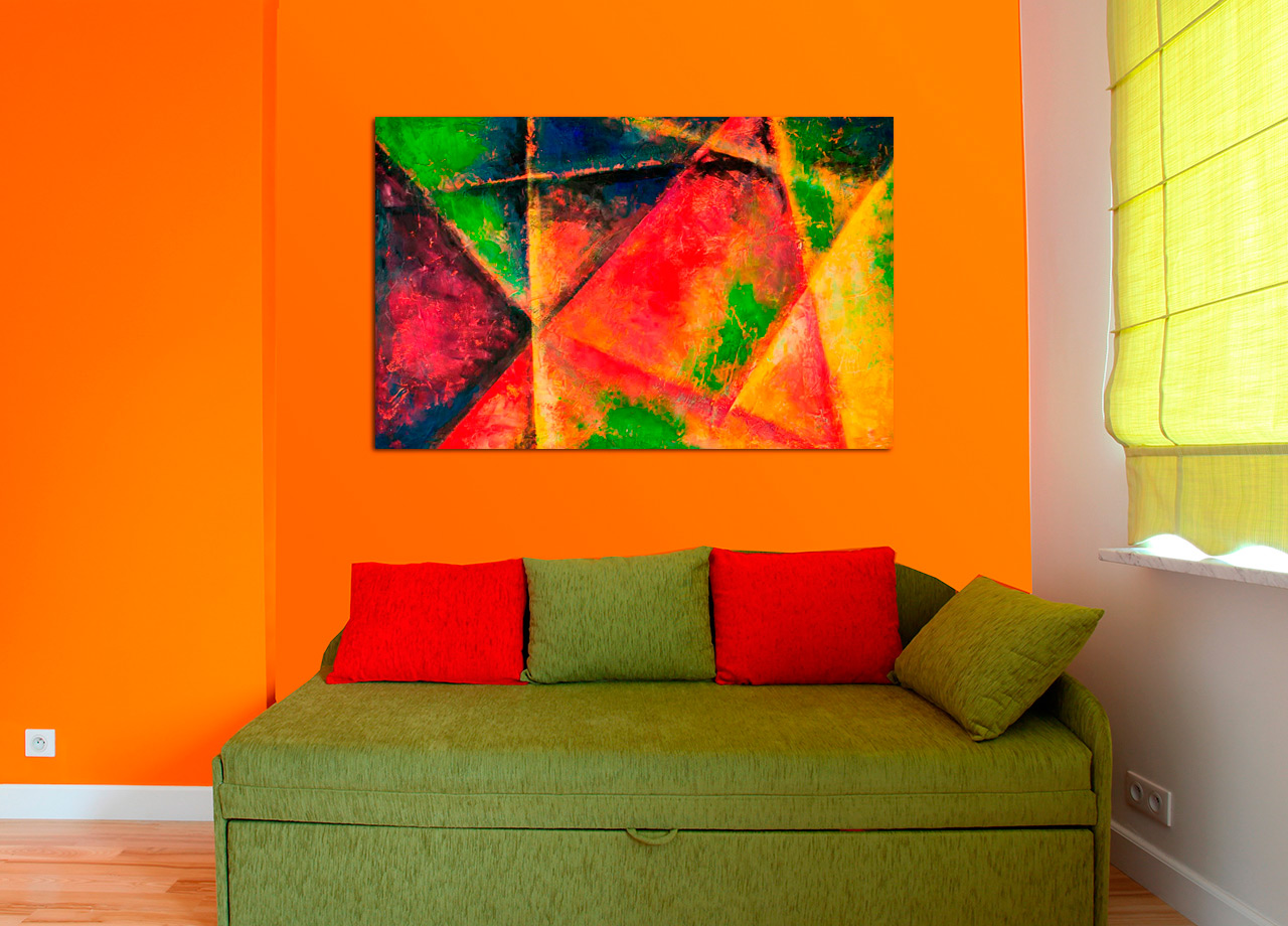 O quadro mistura colorida é uma peça de arte abstrata que ilumina a parede com tons vibrantes de vermelho verde e amarelo