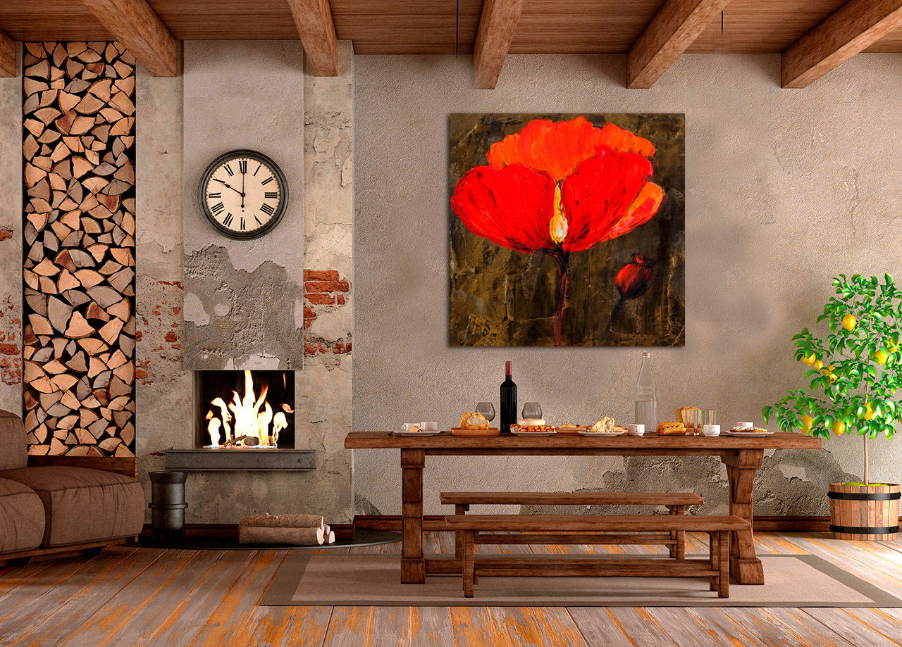 Este quadro papoila vermelha traz uma explosão de cor que transforma qualquer divisão num espaço mais acolhedor e vibrante. A imagem da papoila em tons intensos cria um ponto focal elegante que realça paredes neutras e complementa decorações rústicas ou modernas. Ideal para sala de estar, sala de jantar junto à lareira ou hall de entrada, acrescenta personalidade sem sobrecarregar. Nas colecções de quadros de flores, esta peça destaca se pela cor e presença e é perfeita para quem procura transmitir calor e sofisticação com simplicidade. Fácil