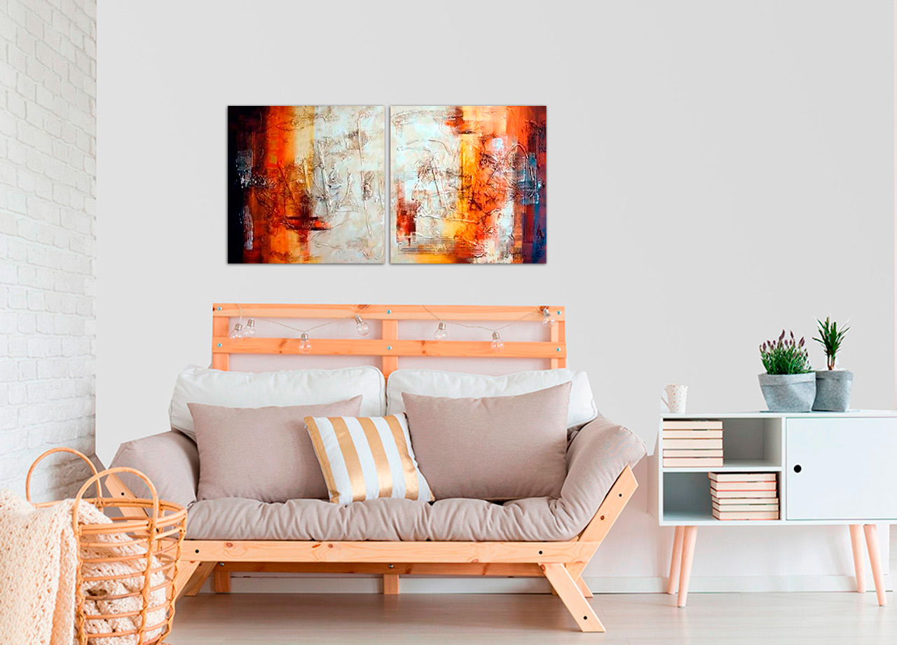 O quadro passagem de cor traz uma presença vibrante e contemporânea que realça qualquer ambiente. Com duas telas em composição harmoniosa, cria um ponto focal elegante acima do sofá ou da cabeceira. As tonalidades quentes e a transição cromática adicionam profundidade e movimento, tornando o espaço mais acolhedor e sofisticado. Ideal para quem procura renovar a decoração sem complicações, combina facilmente com diferentes estilos e paletas. Valoriza a parede e transmite personalidade sem sobrecarregar o ambiente. Transforme a sua sala de estar ou escritório com um toque artístico que eleva a aparência do espaço de forma imediata.