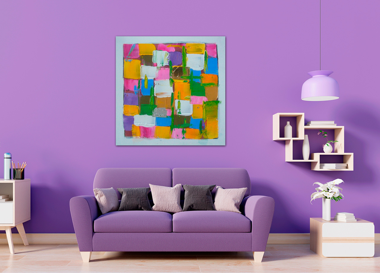 Este quadro quadraditos de cor traz uma explosão de vida a qualquer divisão com blocos coloridos que saltam à vista. O formato quadrado confere equilíbrio visual e cria um ponto focal que enche a sala de personalidade sem esforço. Perfeito para amantes de quadros abstratos. Ideal para quem procura renovar a decoração com uma peça moderna e versátil que combina com tons neutros ou paredes vibrantes. A mistura de cores e texturas dá profundidade e movimento ao espaço fazendo com que sofás e prateleiras ganhem nova expressão. Fácil de integrar em salas, escritórios ou quartos para uma atualização instantânea do ambiente.