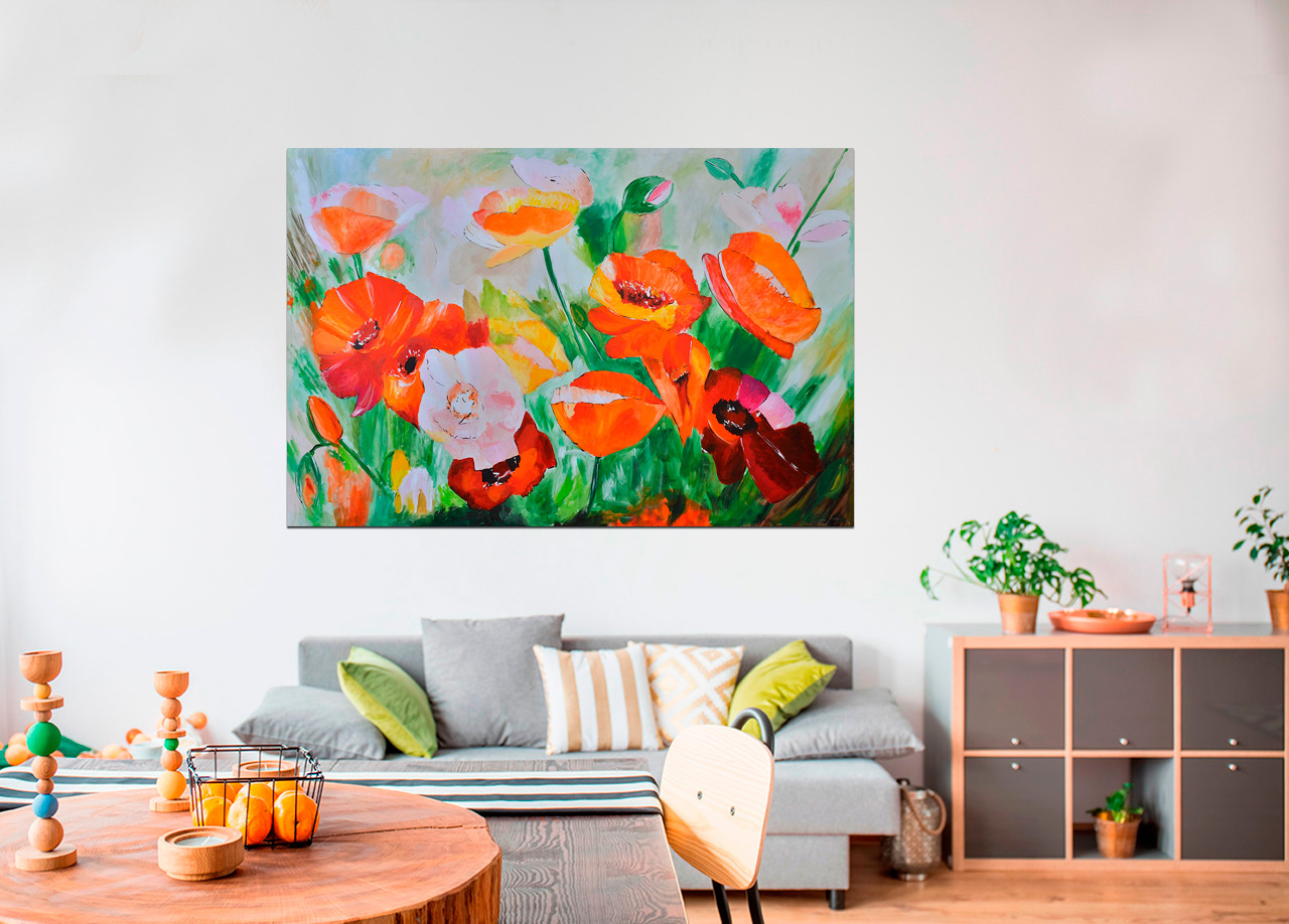Este quadro em tons quentes em flor traz uma explosão de cor que aquece qualquer divisão da casa. As flores vibrantes criam um ponto focal que realça paredes neutras e confere imediata sensação de aconchego e vivacidade. Ideal para sala de estar, hall de entrada ou escritório, transforma ambientes sem necessidade de obras e contribui para uma atmosfera mais acolhedora e inspiradora. A paleta quente harmoniza com mobiliário claro ou escuro e valoriza espaços modernos e clássicos. Uma peça decorativa que renova o ambiente e eleva o estilo com simplicidade e personalidade.